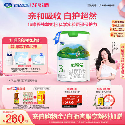 【杨幂推荐】君乐宝臻唯爱3段乳铁蛋白幼儿配方羊奶粉800g*6罐