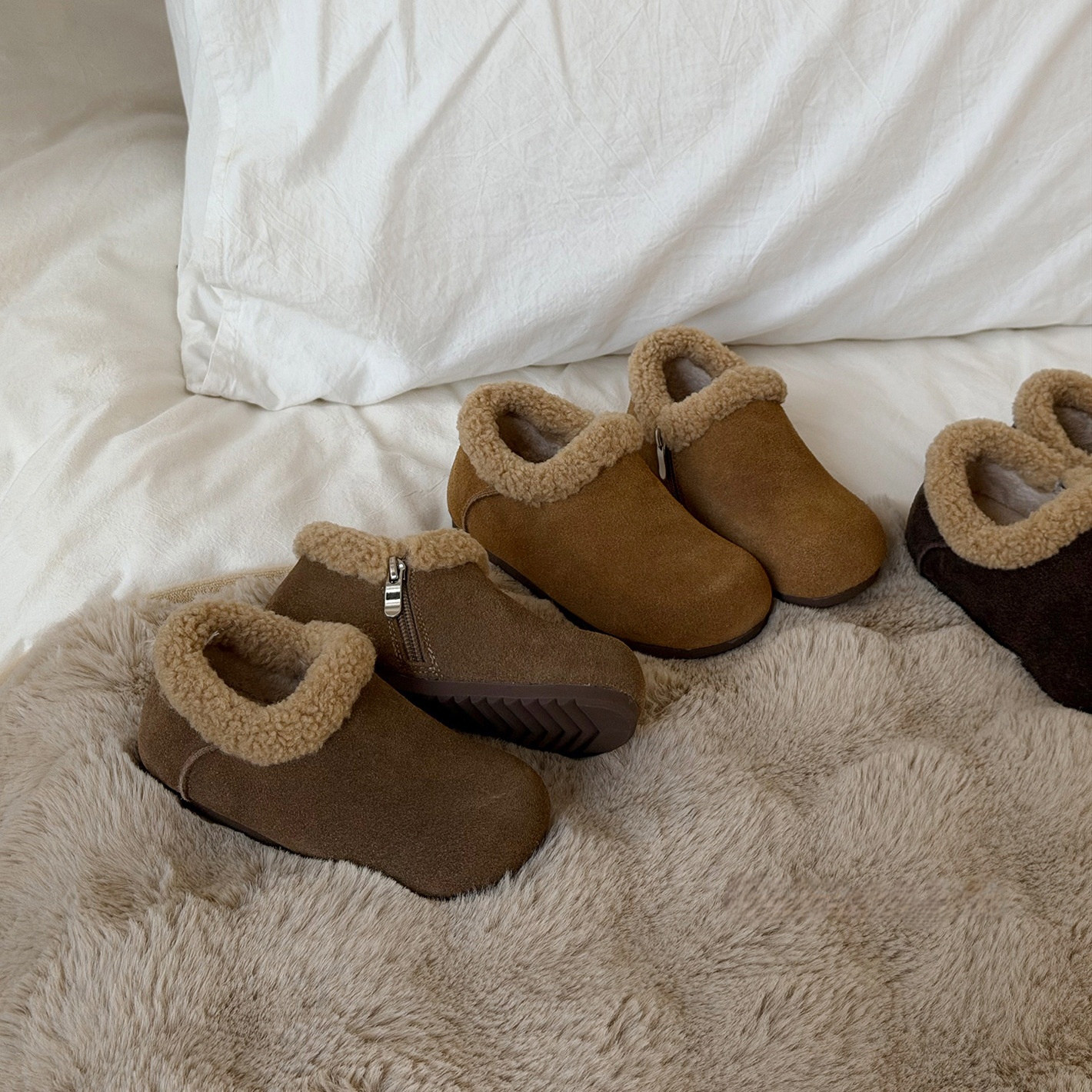 冬季儿童勃肯鞋2025新款男童真皮休闲豆豆鞋女童软底加绒保暖鞋韩
