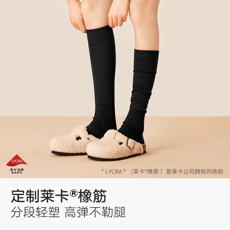 羊毛堆堆小腿袜子女秋冬季长筒配乐福鞋防滑不掉筒春秋款黑色长袜