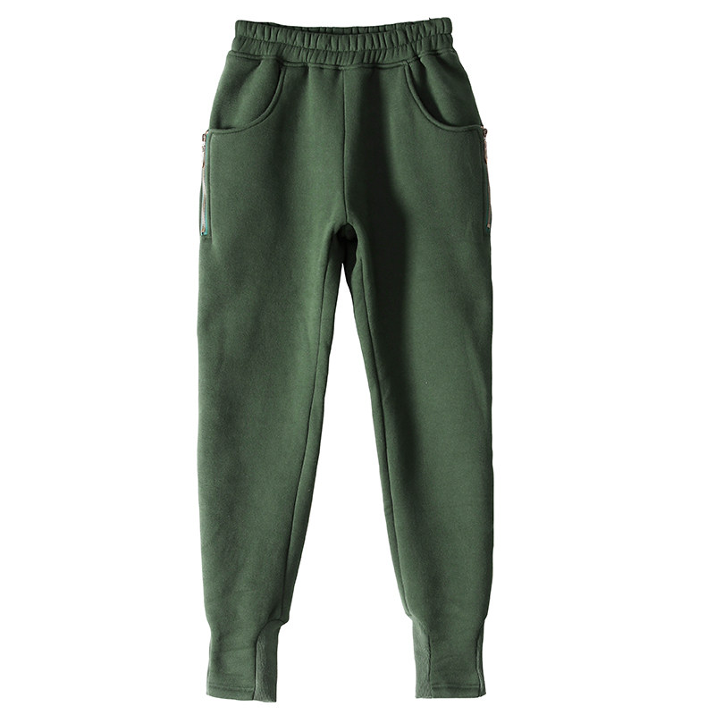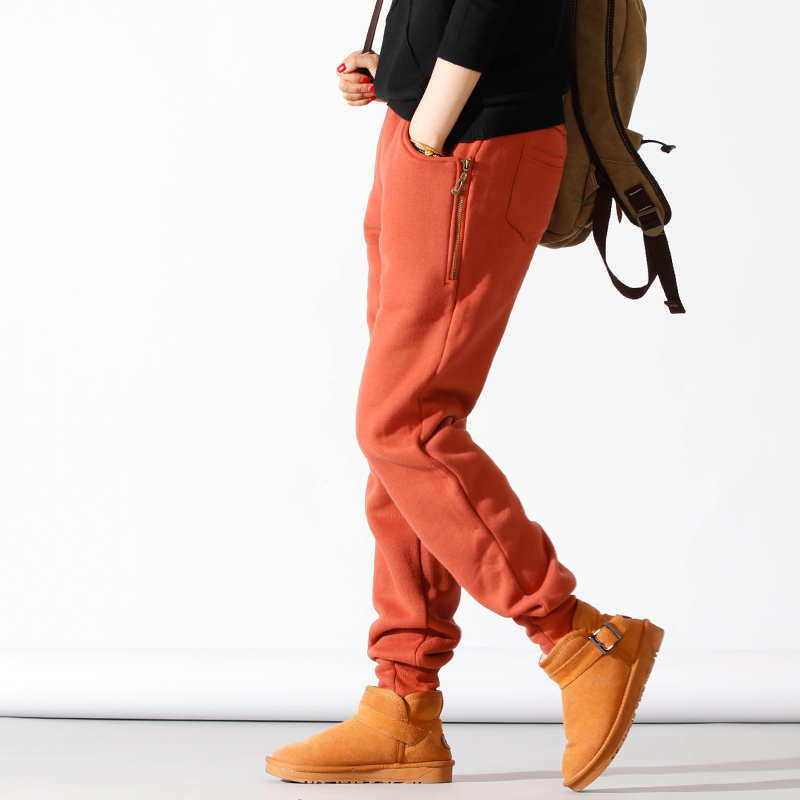 皇森冬季抓绒哈伦小脚裤侧拉链加绒加厚全棉小脚裤休闲卫裤女靴裤