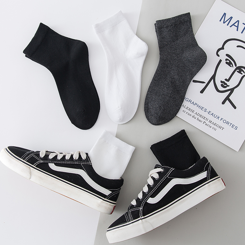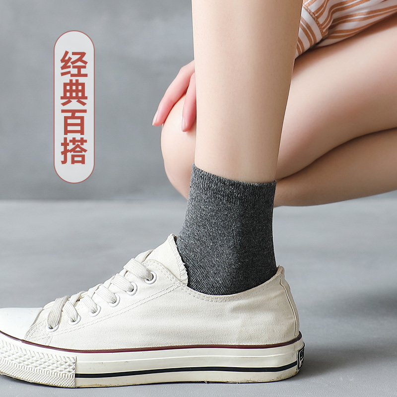 新疆棉黑色袜子女中筒袜春秋纯棉透气春季女士黑白百搭纯色长棉袜