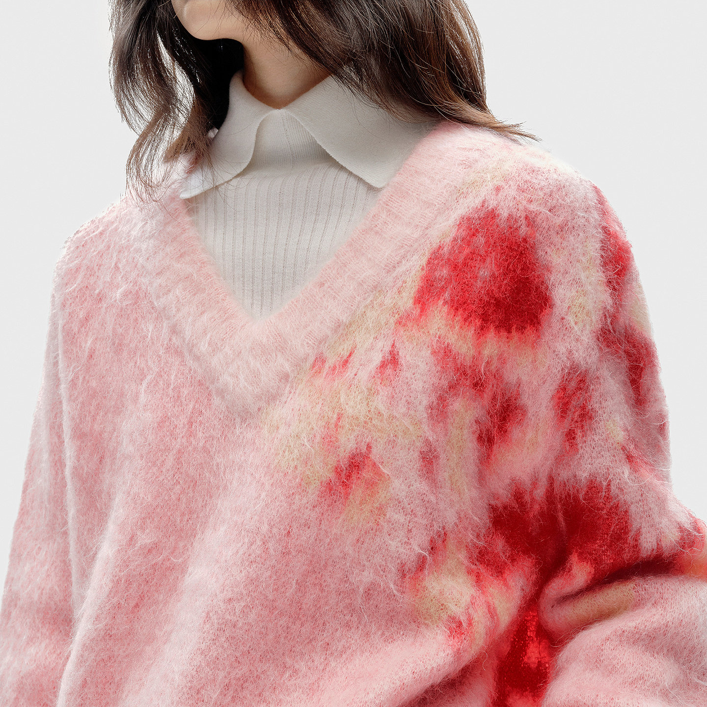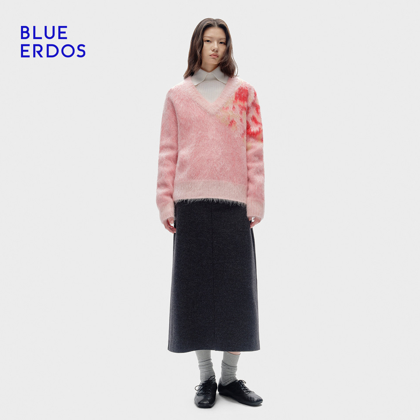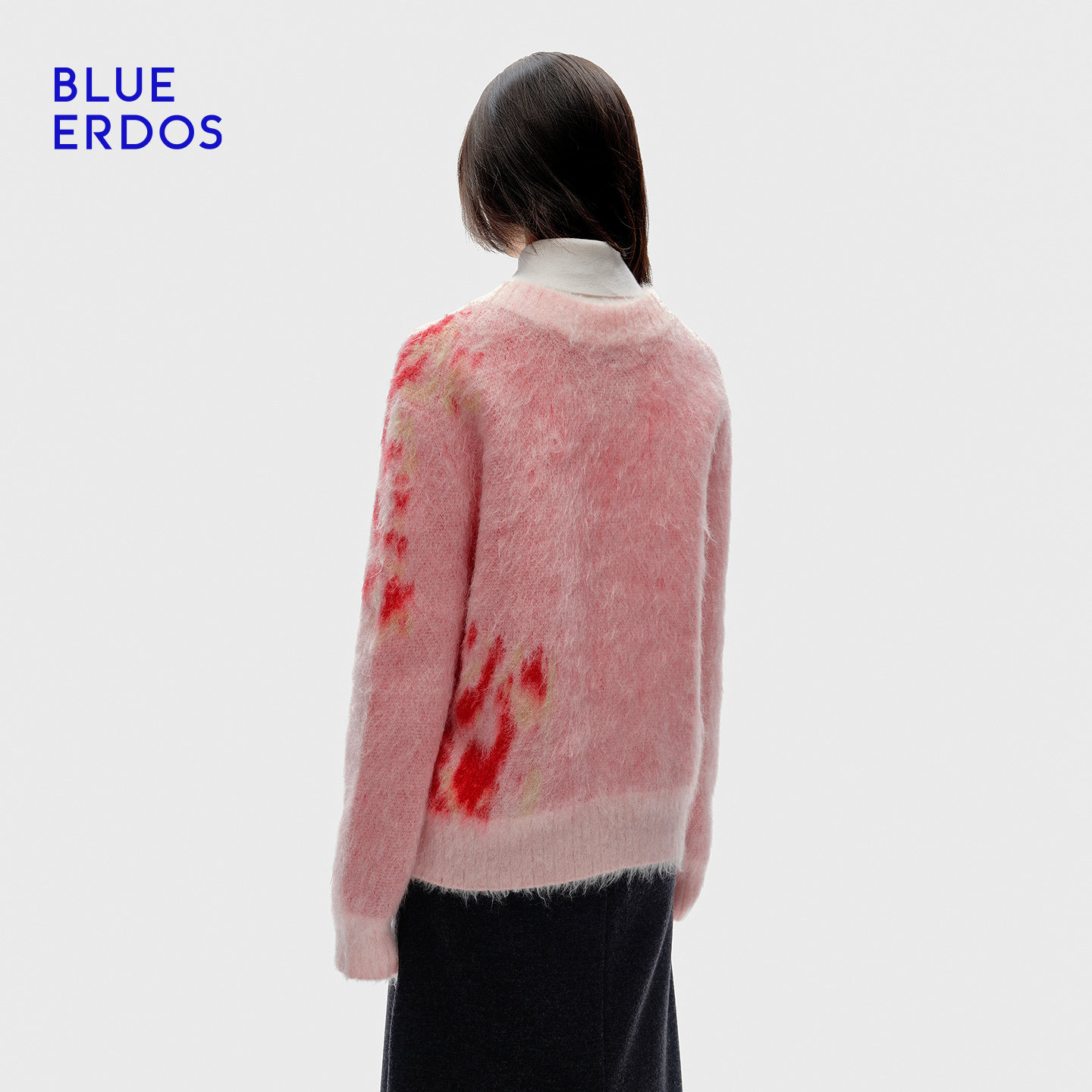BLUE ERDOS冬季新品摩登质感V领提花马海毛混纺针织衫B256D0046