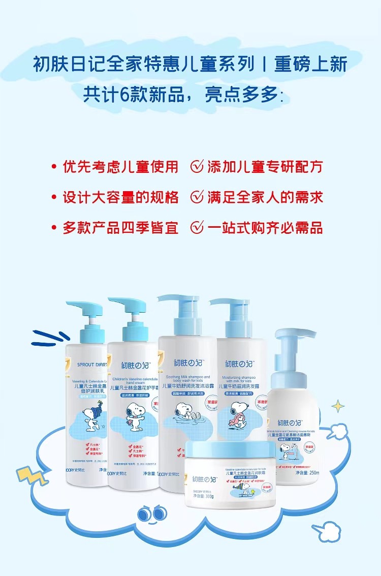 史努比初肤日记儿童凡士林润肤乳干燥滋润保湿面霜秋冬宝宝身体乳