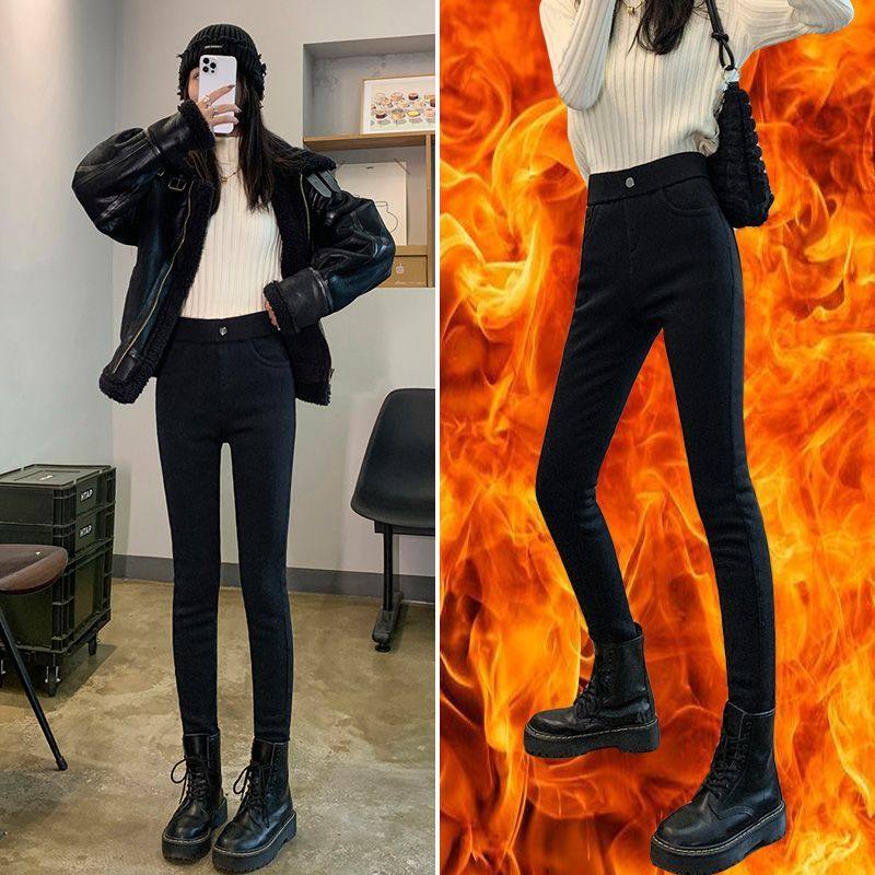 加厚羊羔绒打底裤女裤冬季加绒东北一体棉裤高腰黑色新款外穿小脚