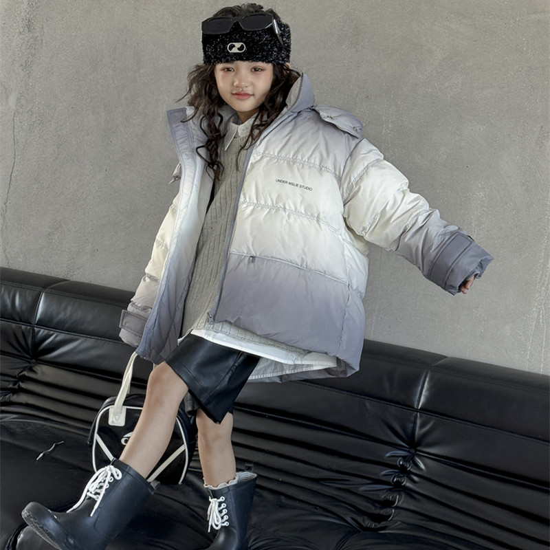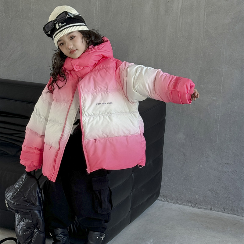 韩国新款渐变色儿童羽绒服男女童宝宝冬季中长款加厚洋气白鸭绒潮