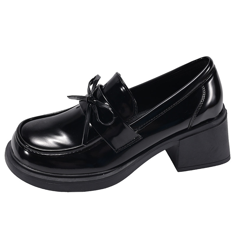 黑色蝴蝶结英伦风棕色厚底小皮鞋女配裙子百搭乐福鞋高跟鞋jk单鞋