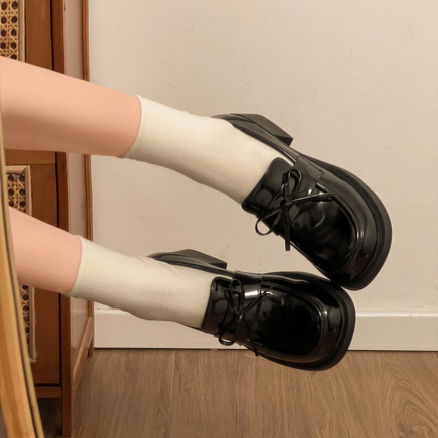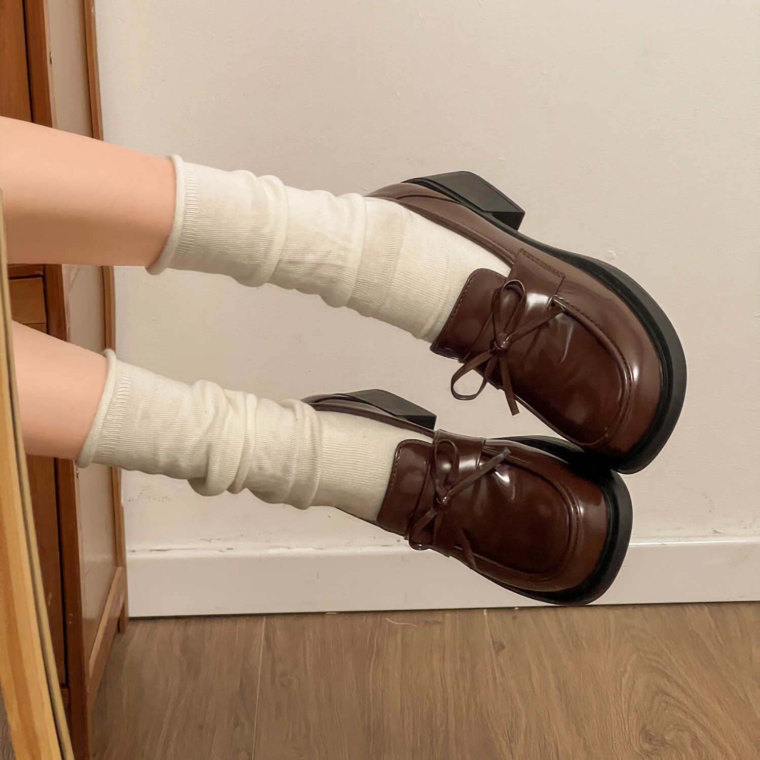 黑色蝴蝶结英伦风棕色厚底小皮鞋
