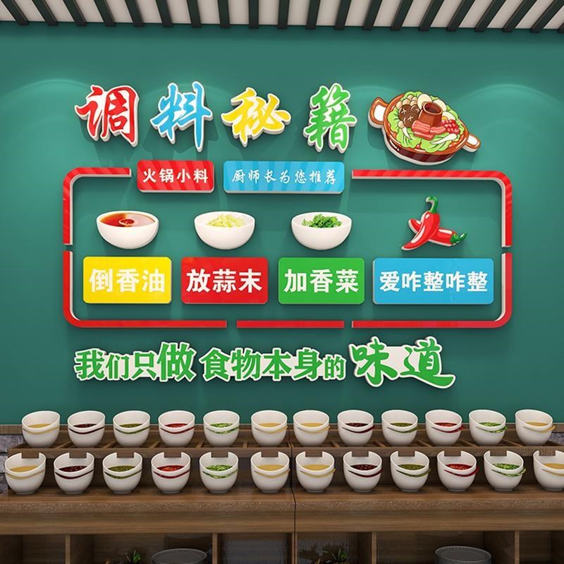 网红串串自助火锅店墙面装饰麻辣烫调料台区背景创意广告贴纸壁画