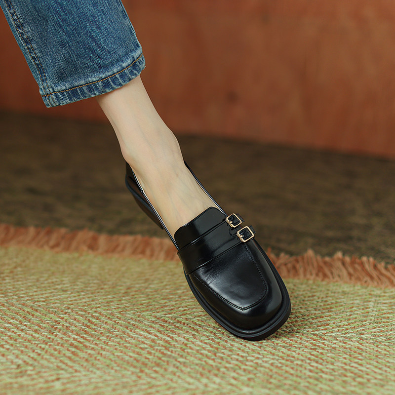 深口大码休闲43一跟女小圆头单鞋皮鞋低跟乐福鞋女鞋英伦粗41春季