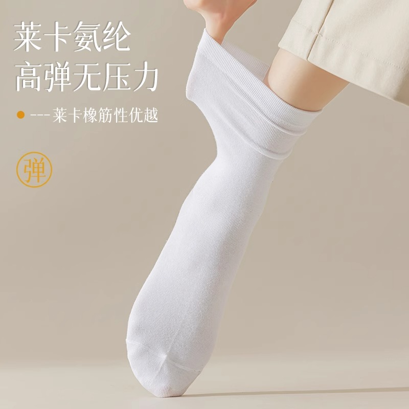 诸暨袜子女春秋款中筒袜女生纯棉运动防臭乐福鞋月子白色堆堆长袜