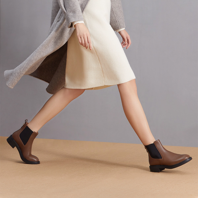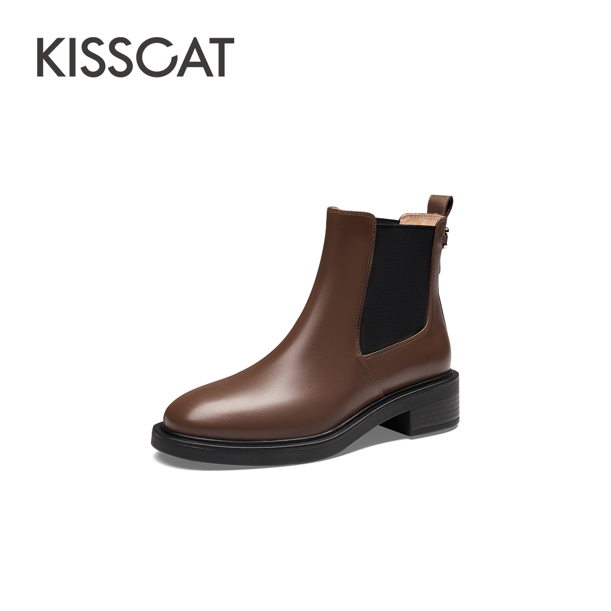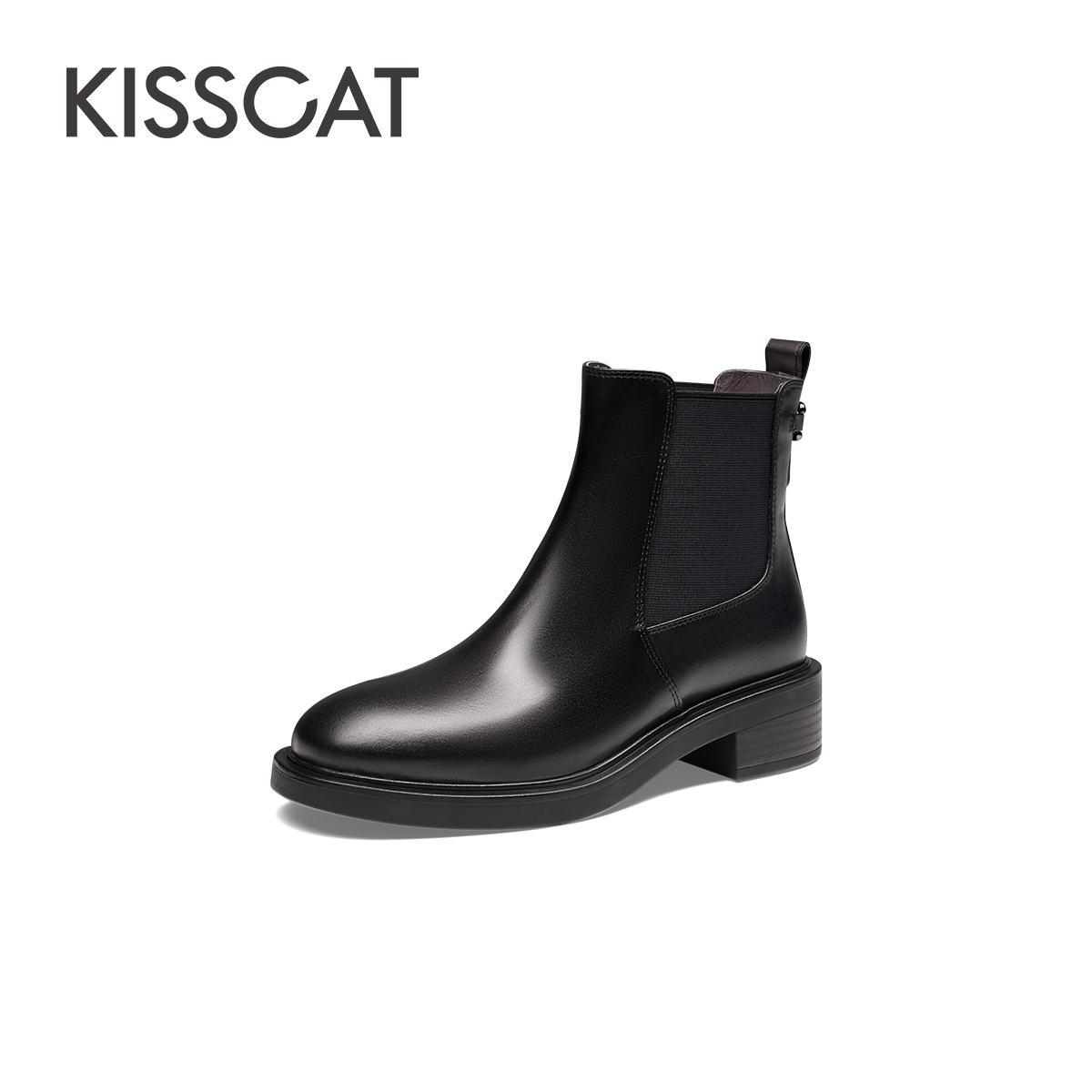 KISS CAT/接吻猫秋冬牛皮弹力切尔西短靴厚底烟筒靴女KA43708-50