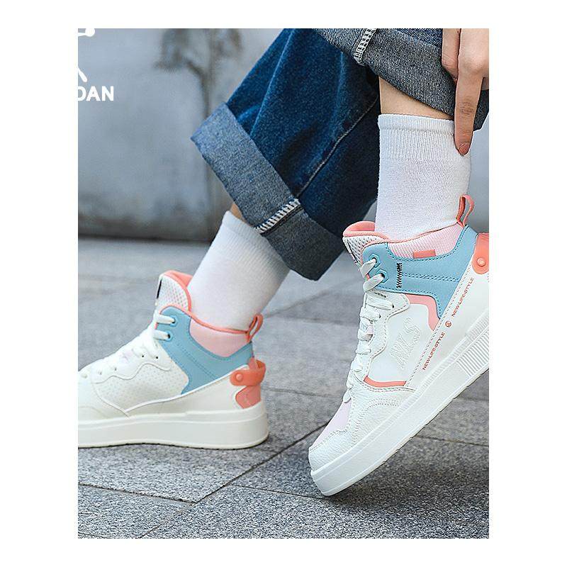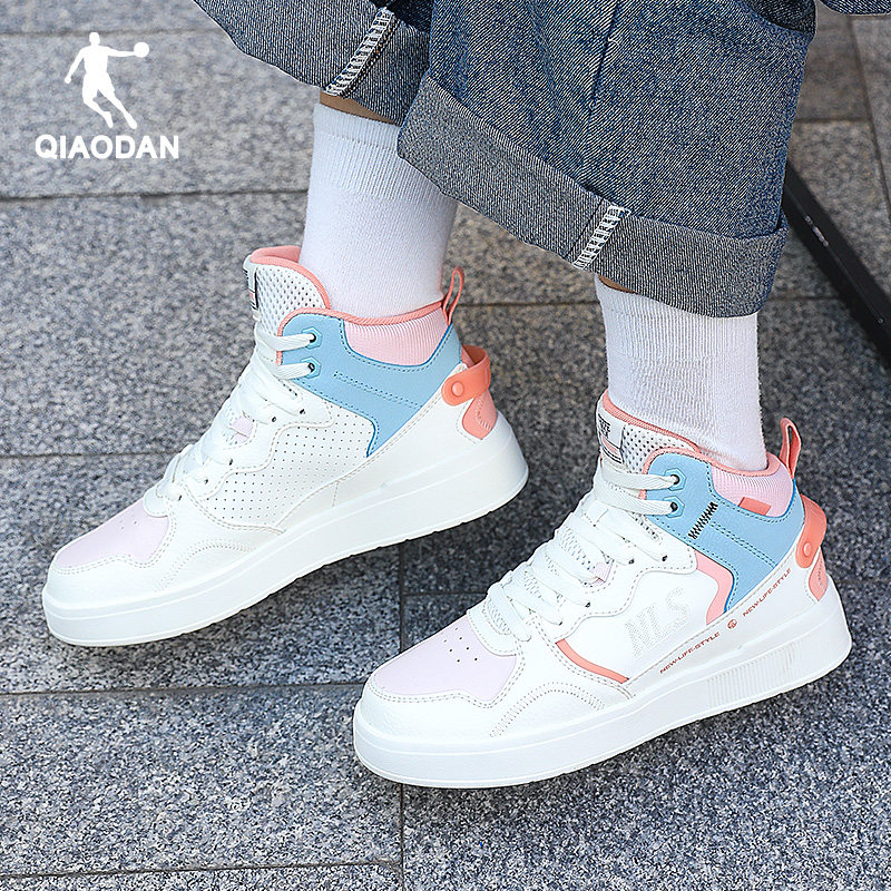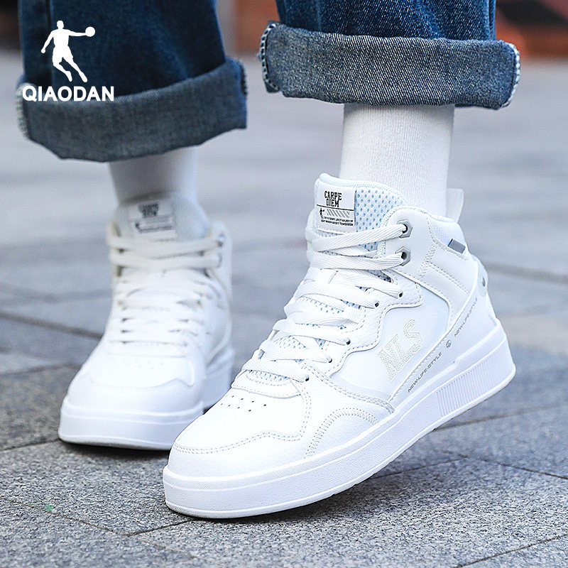 中国乔丹女板鞋高帮皮面防水