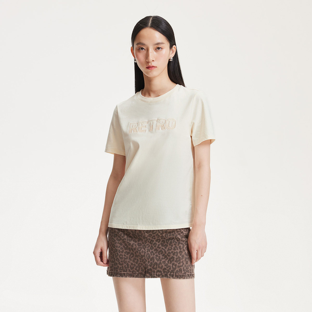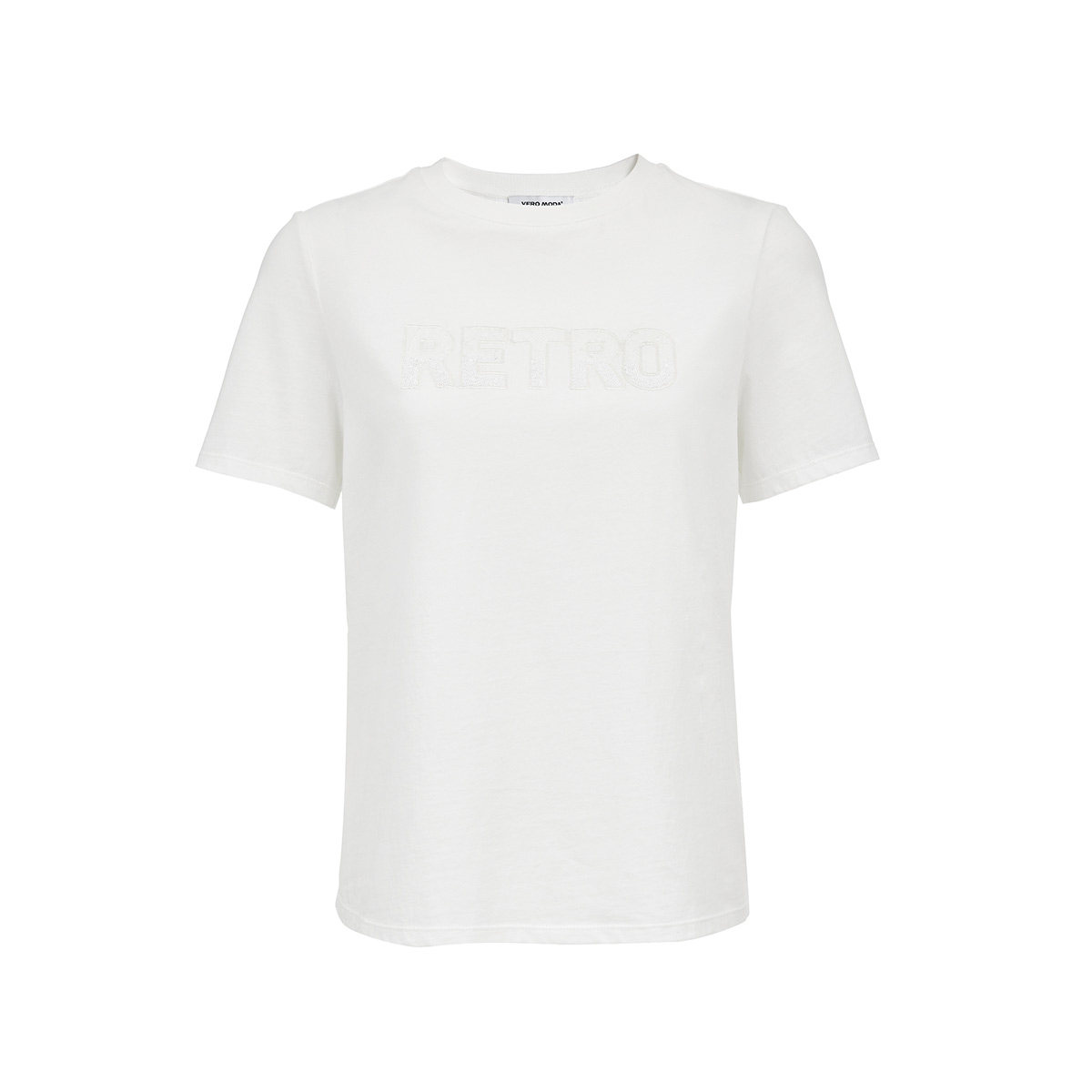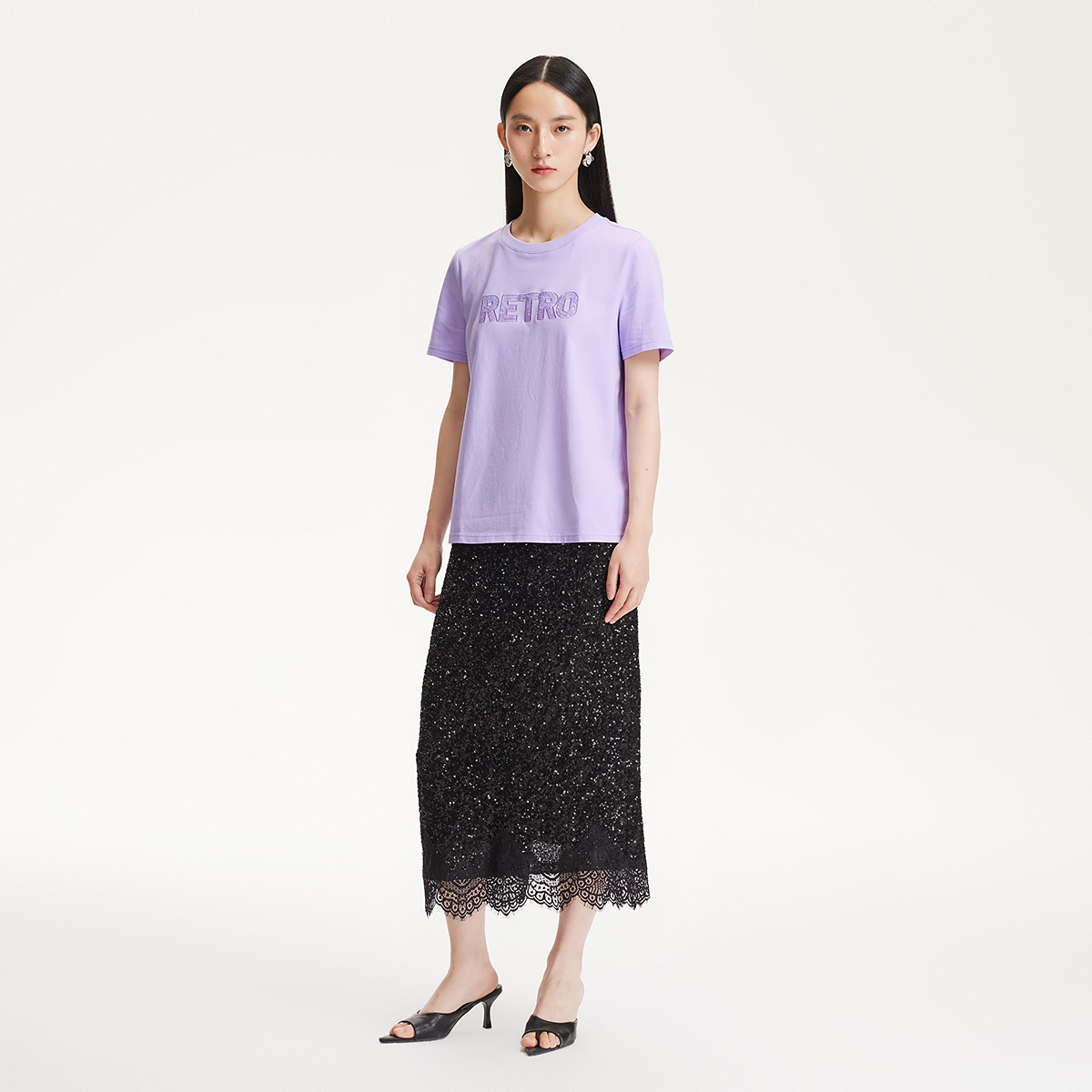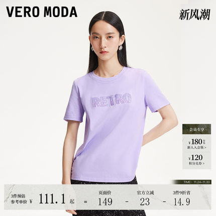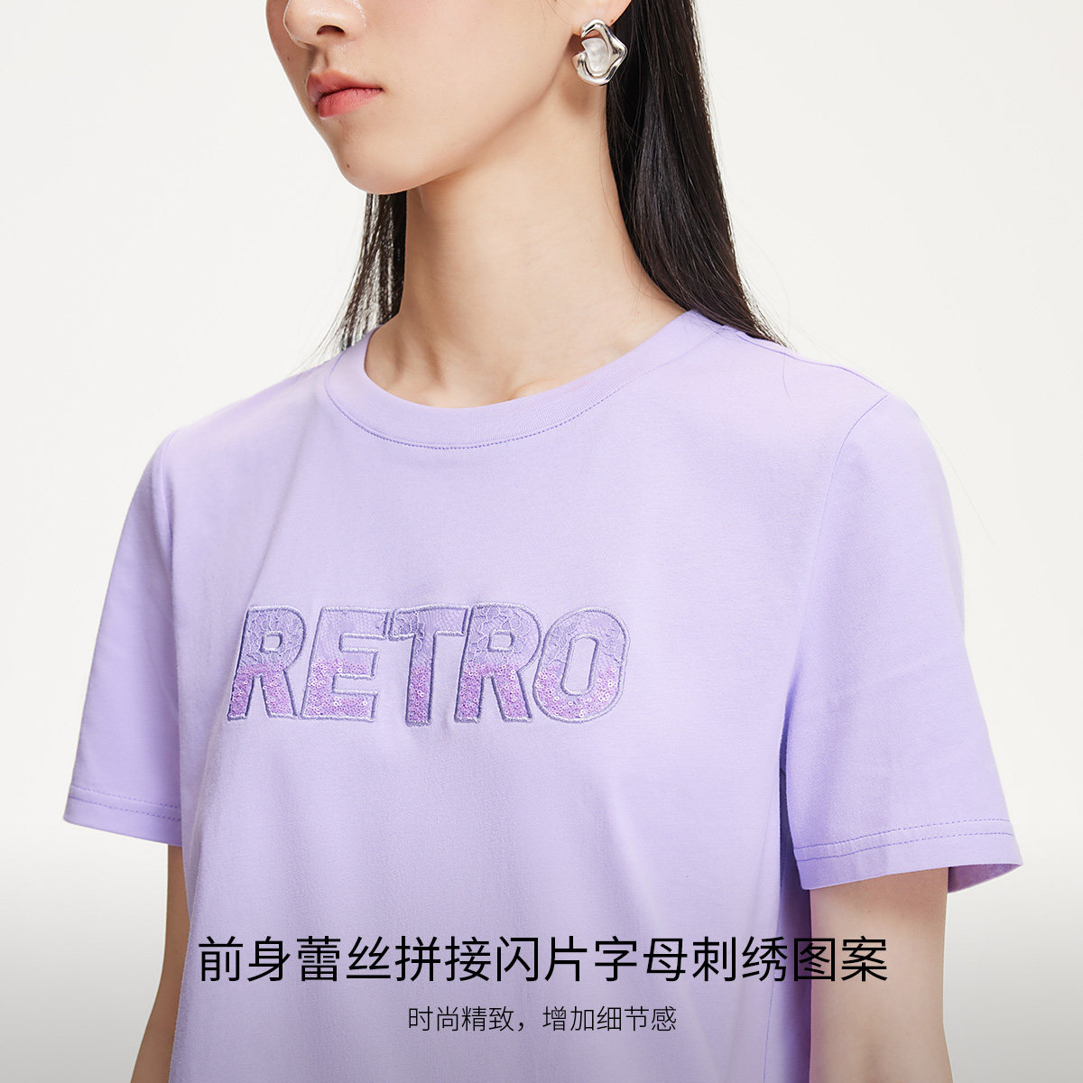 Vero ModaT恤2025夏季新款字母刺绣蕾丝拼接亮片基础款短袖百搭