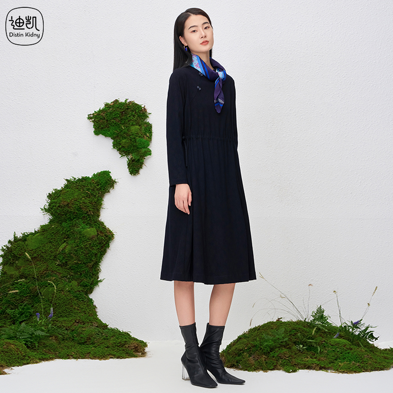 【写意中国】迪凯国风盘扣复古连衣裙春季优雅收腰长袖裙子