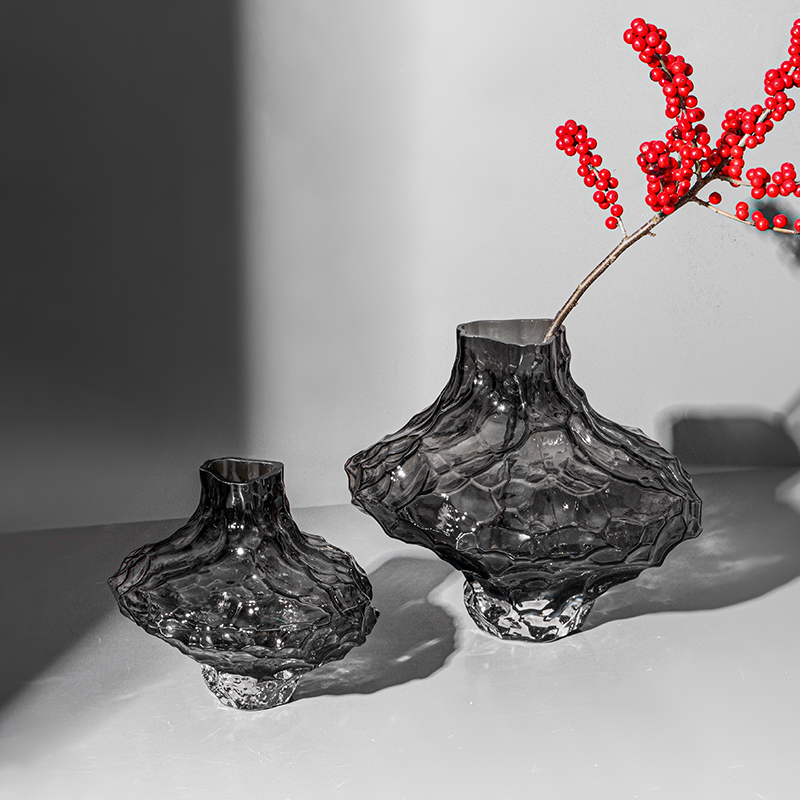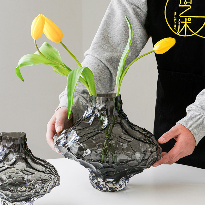 北欧山谷玻璃花瓶丹麦峡谷客厅透明插花水养轻奢高档创意艺术摆件