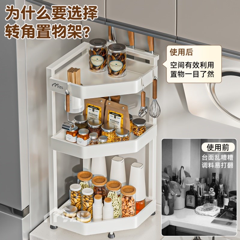 厨房转角调e料品置物架台面墙角收纳调味料多功能三角多层调料架