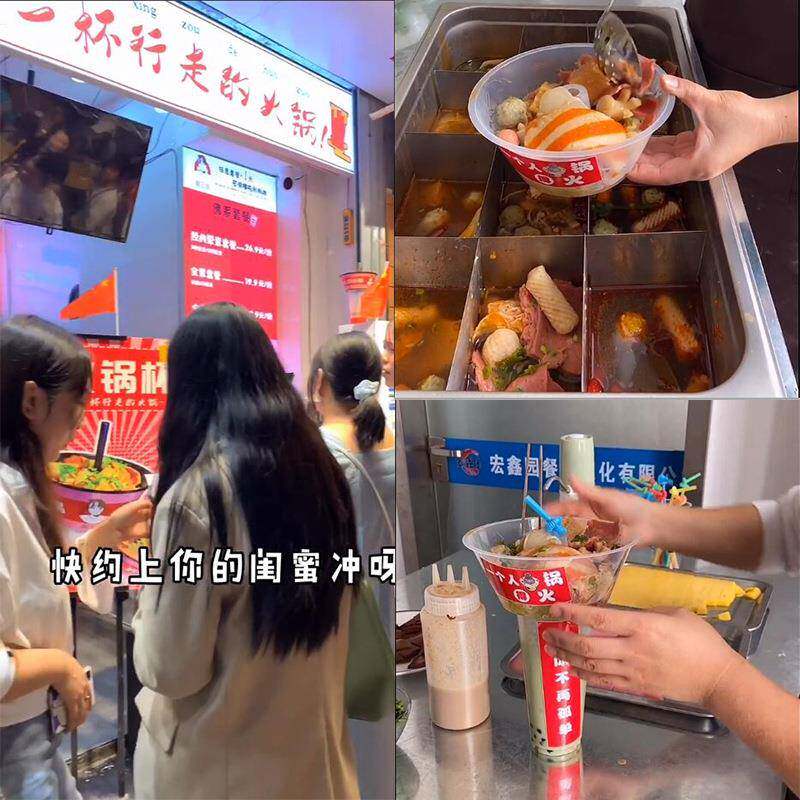 网红行走的火锅杯奶茶杯摆摊设备冒烟冷饮机夜市移动小吃推车机器