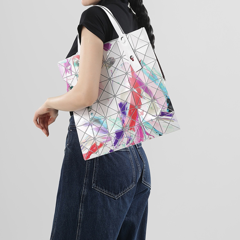 三宅一生女士新品油漆喷墨印花六格托特包购物袋手提包BB38 AG802