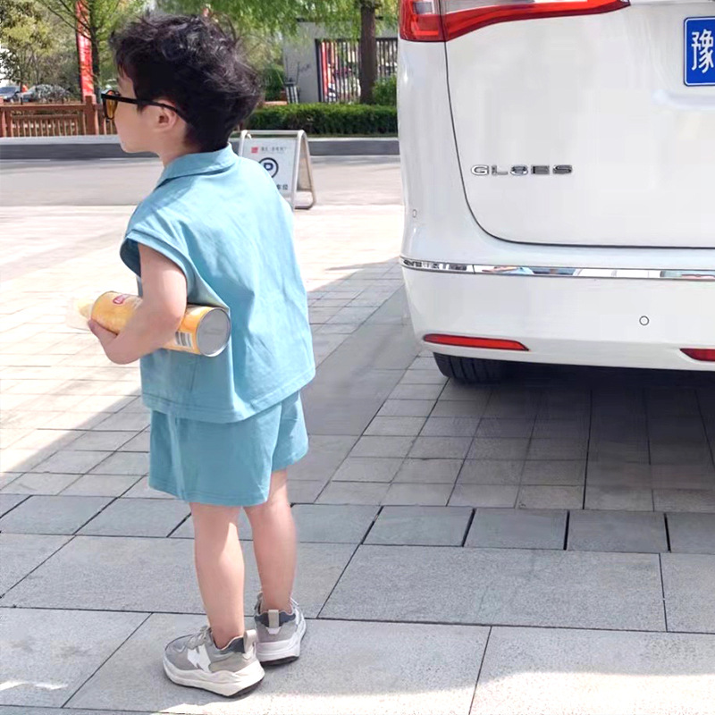 TQ36新款翻领无袖背心POLO衫纸样短裤套装童装服装打板图