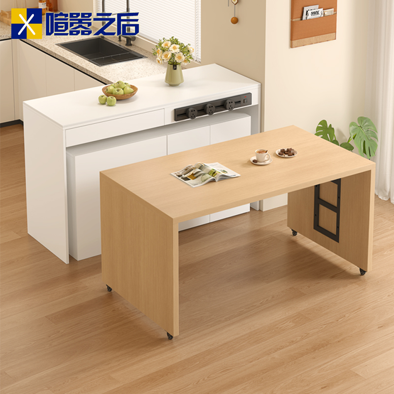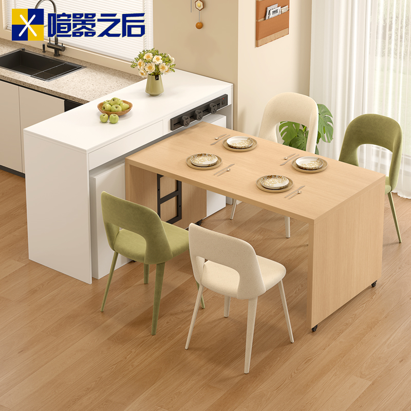 分离式实木岛台餐桌一体