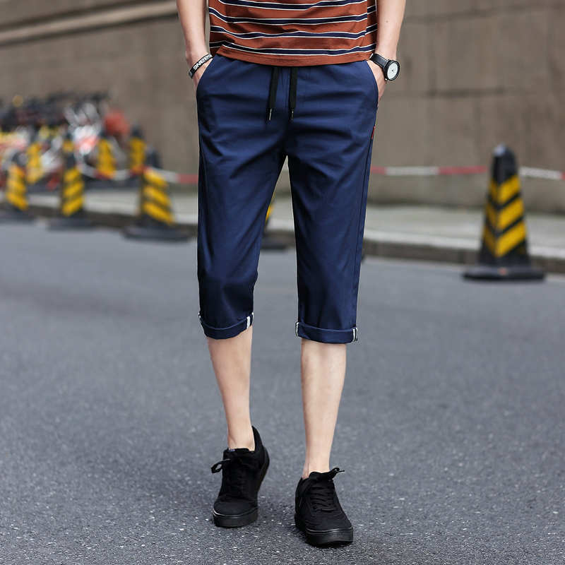 男士短裤男夏天休闲七分裤修身纯棉宽松7五分裤夏季马裤潮松紧腰