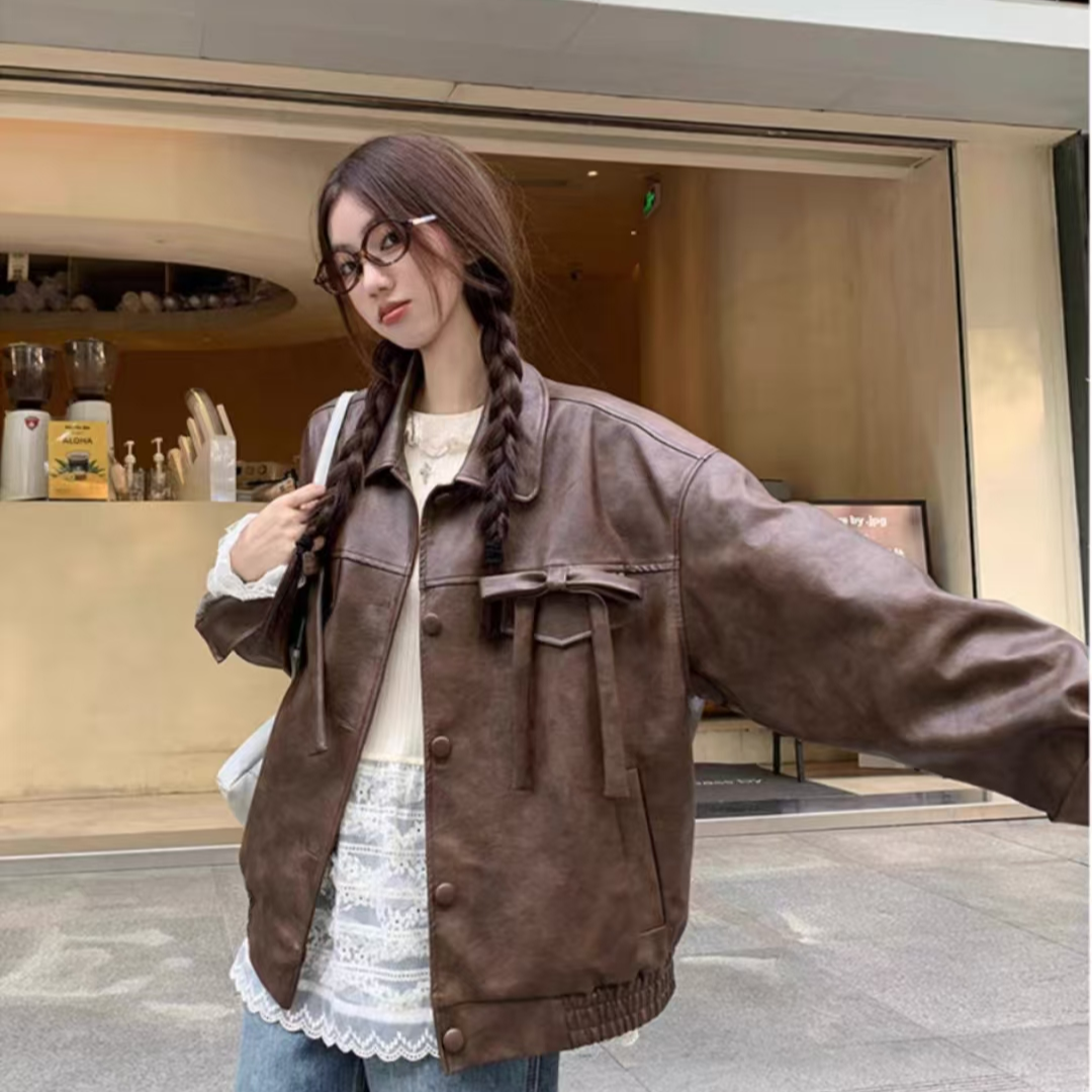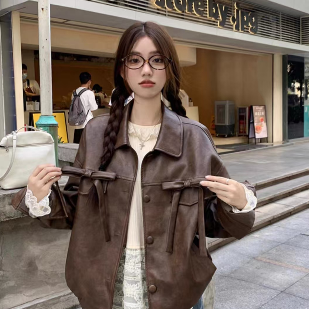 美式复古时尚皮衣外套女秋季2025新款百搭宽松显瘦气质长袖上衣潮