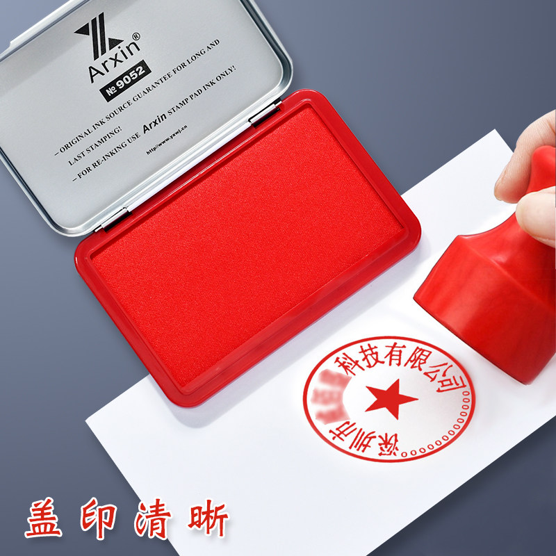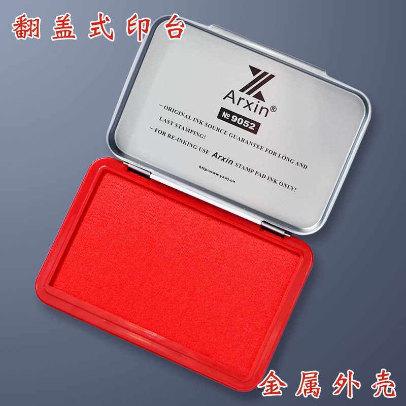 亚信9052快干印台红色印泥速干财务会计办公用品盖章台大容量金属印章盒印尼秒干按手印小号便携亚信印台