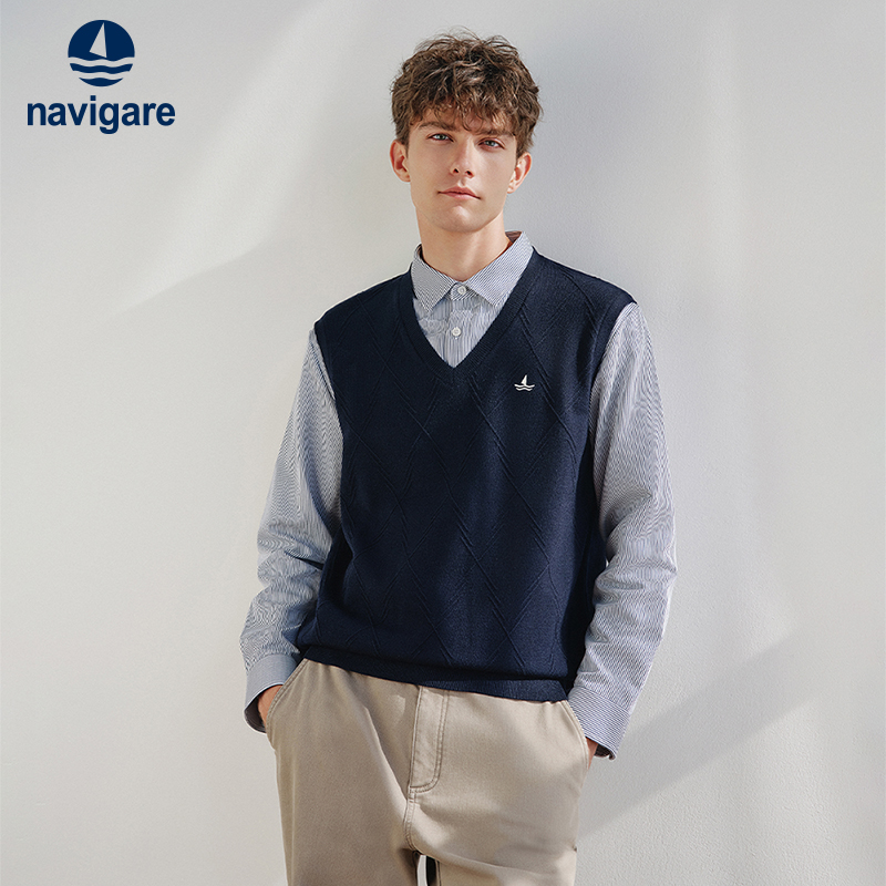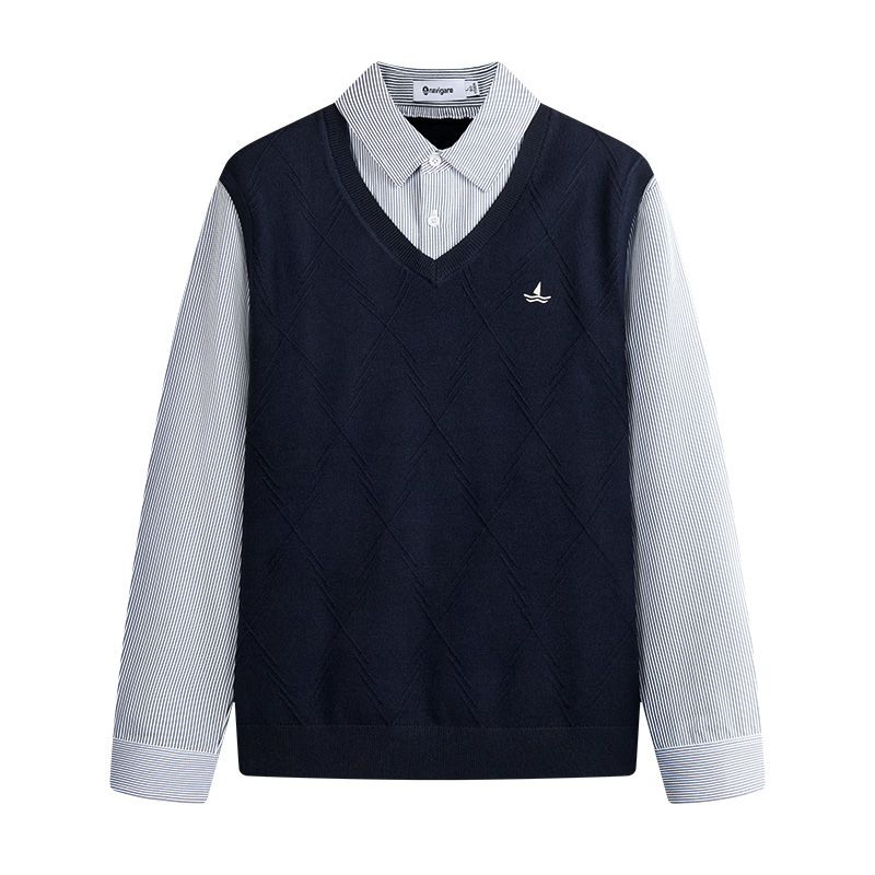 Navigare意大利小帆船假两件针织衫男25秋季新品V领通勤毛衣