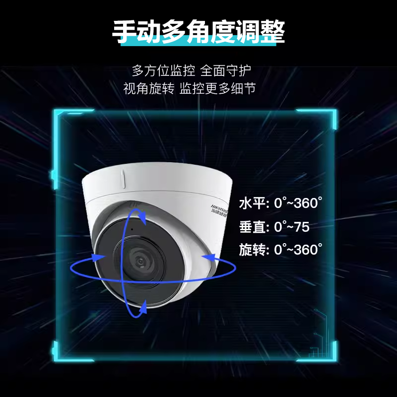 海康威视200万夜视全彩网络POE监控摄像头400万录音半球T12HV3-IA
