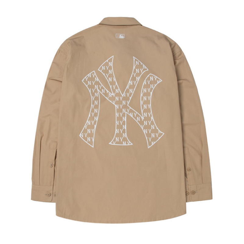 MLB新款情侣衬衫男女NY刺绣复古老花宽松休闲长袖外套潮3AWSM0341