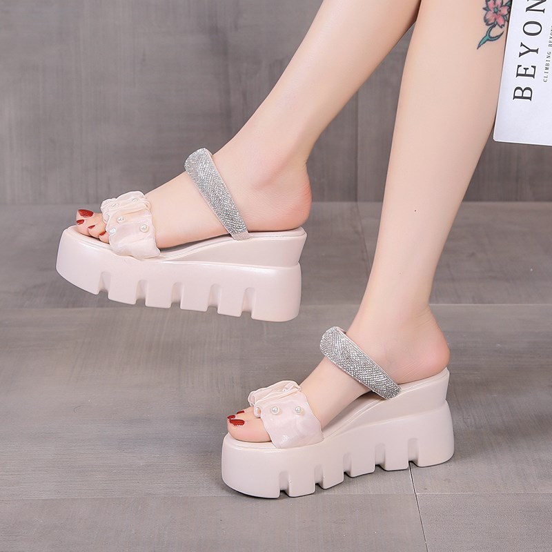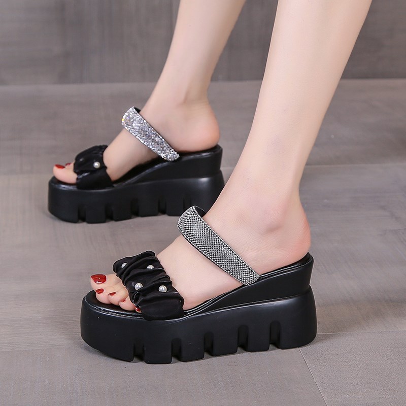 鞋子女夏季2025新款网红高跟拖鞋女外穿超火增Q高防滑厚底坡跟凉