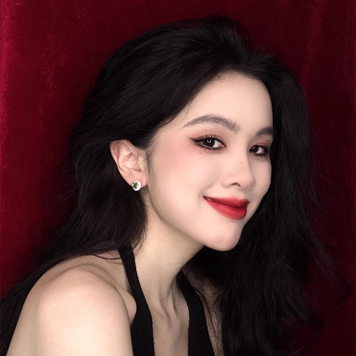 「闪耀曼哈顿」法式复古高级感轻奢微镶橄榄绿紫色宝石耳钉耳夹女