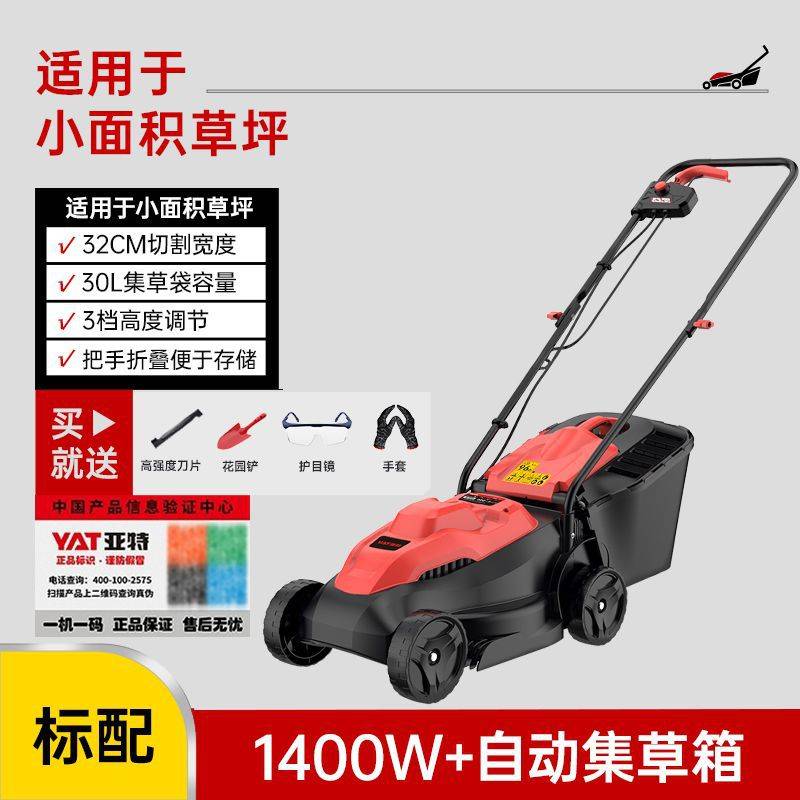 亚特草坪机手推式电动割草机小型家用庭院除草机多功能园林锄草车