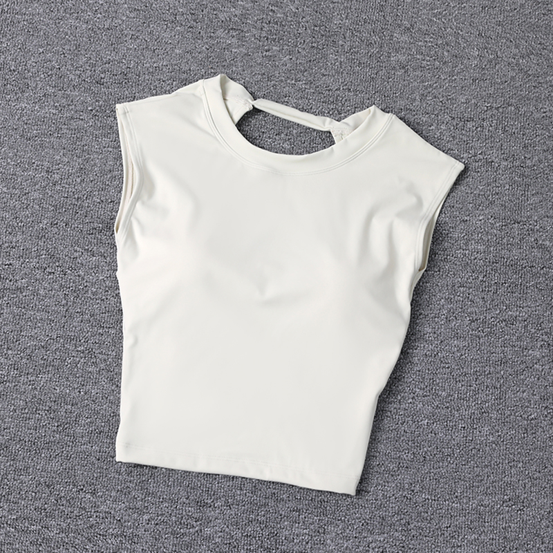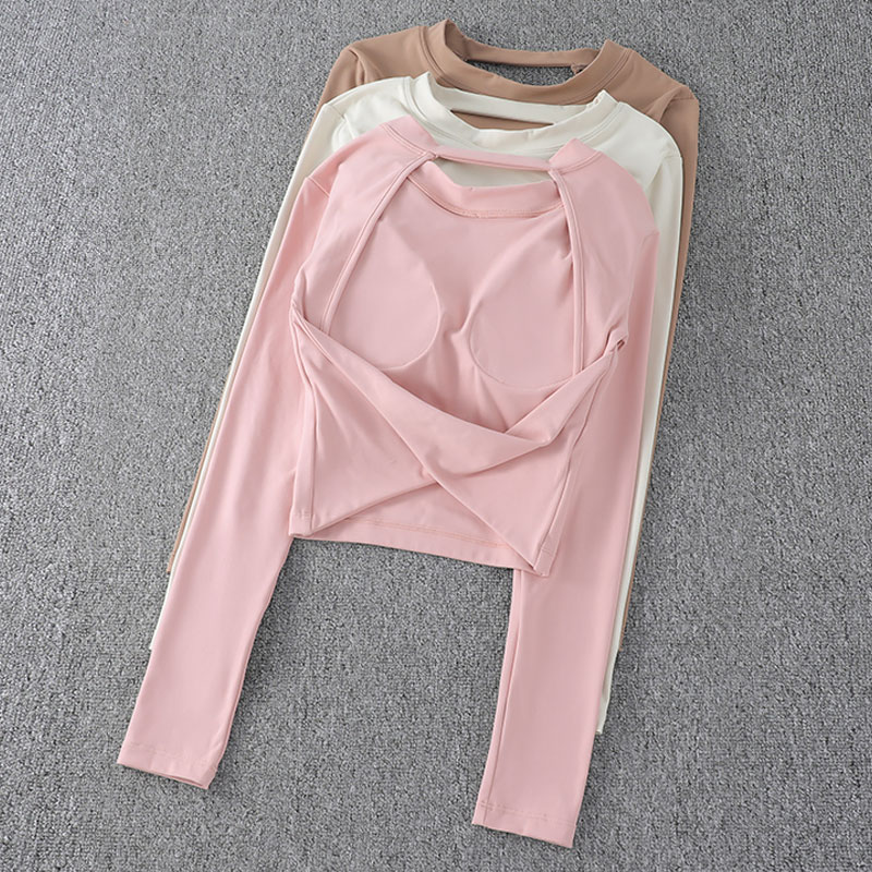 夏季性感短款露背固定胸垫运动T恤背心女紧身训练长袖瑜伽服上衣