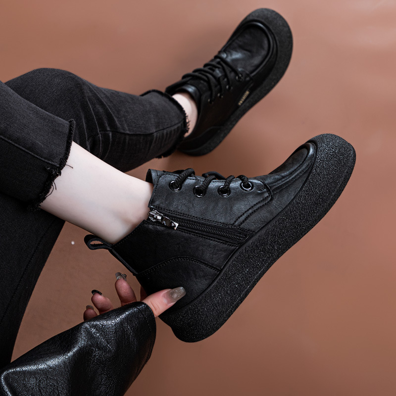 厚底真皮短靴女2025秋冬新款大码43圆头时尚加绒马丁靴单靴雪地靴