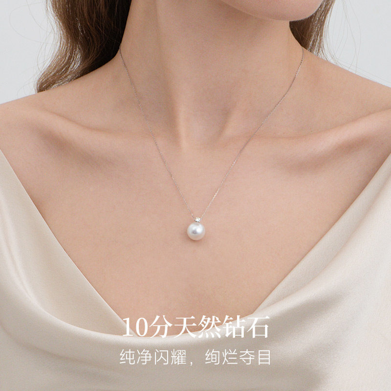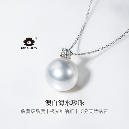 GiO珠宝极光维纳斯澳白戴妃吊坠18K金海水珍珠项链女王妃钻石颈链