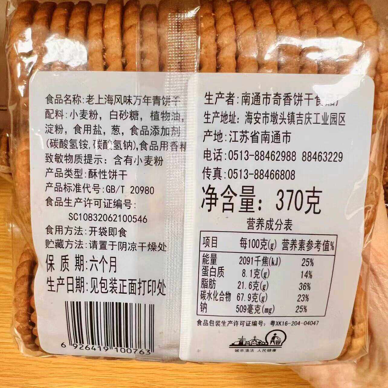 苏琪万年青酥性饼干老上海风味传统糕点370香葱咸味饼干