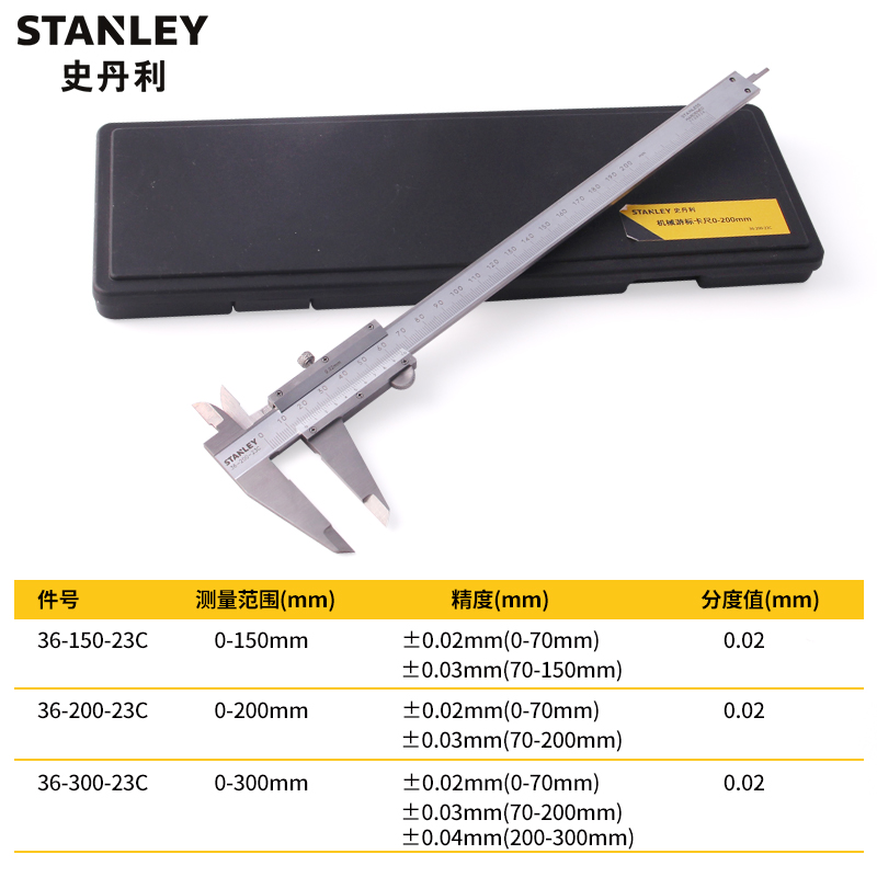 史丹利游标卡尺高精度不锈钢机械卡尺多功能油标深度尺外径内径