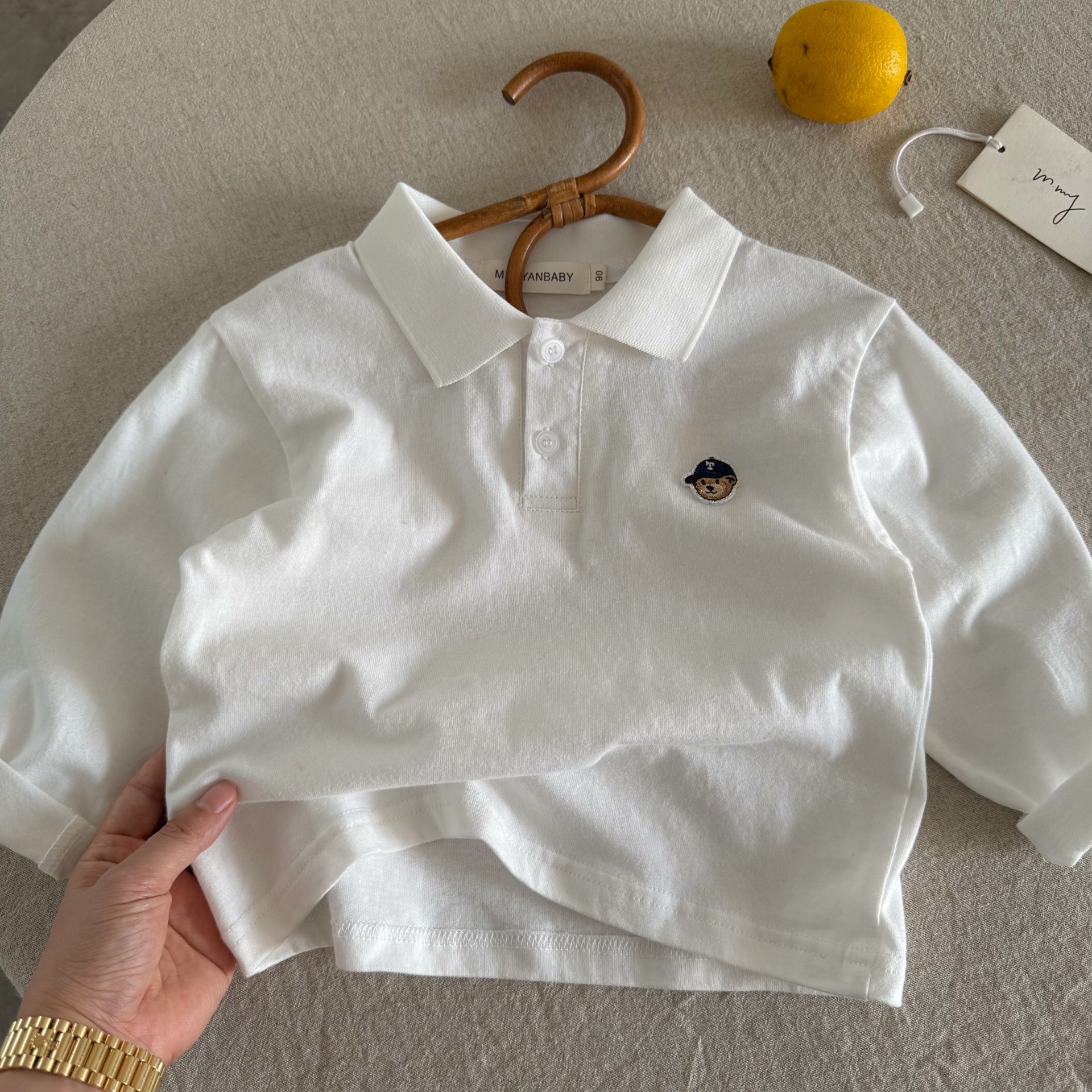 儿童Polo衫男2025秋季新款中小童条纹上衣潮宝宝小熊打底衫女洋气