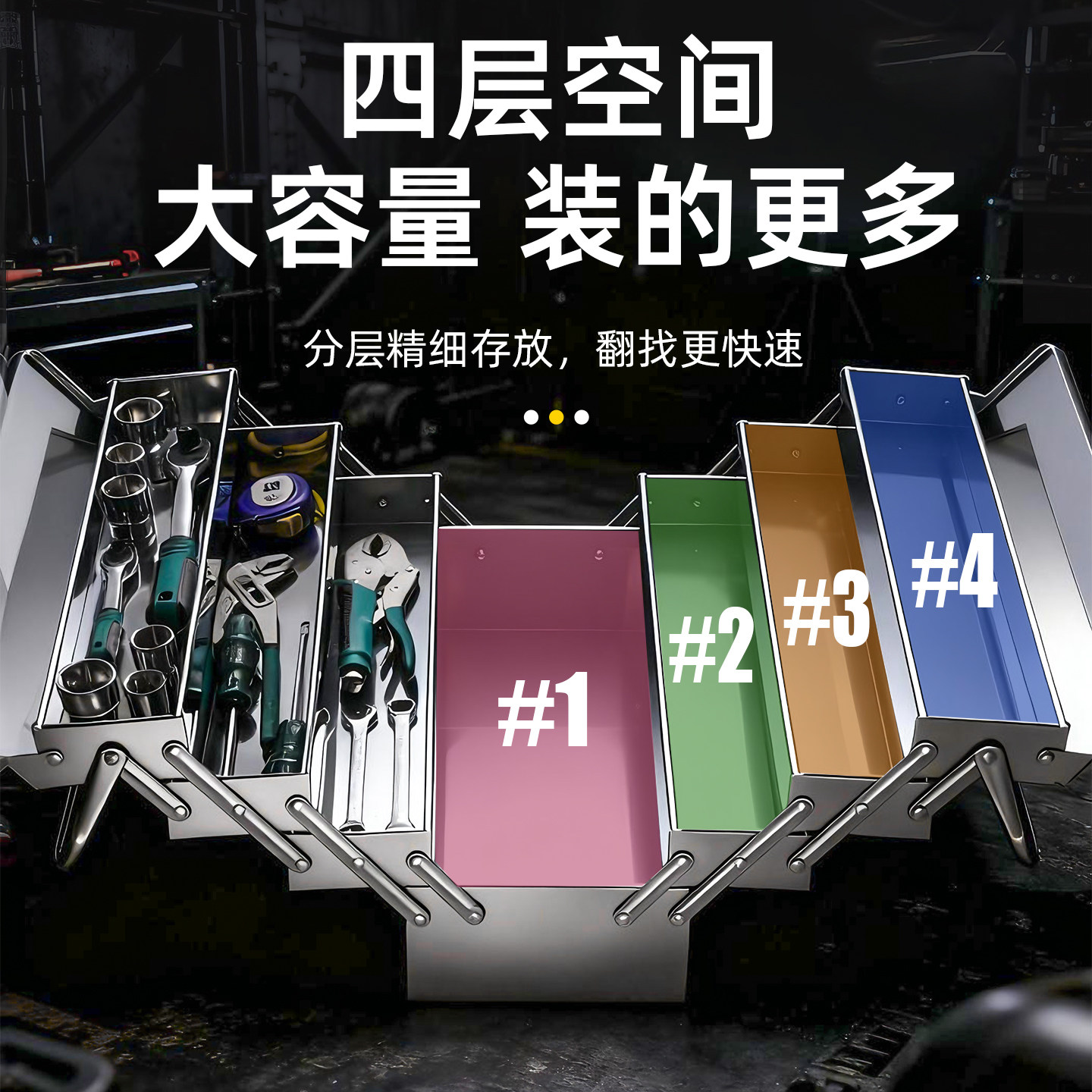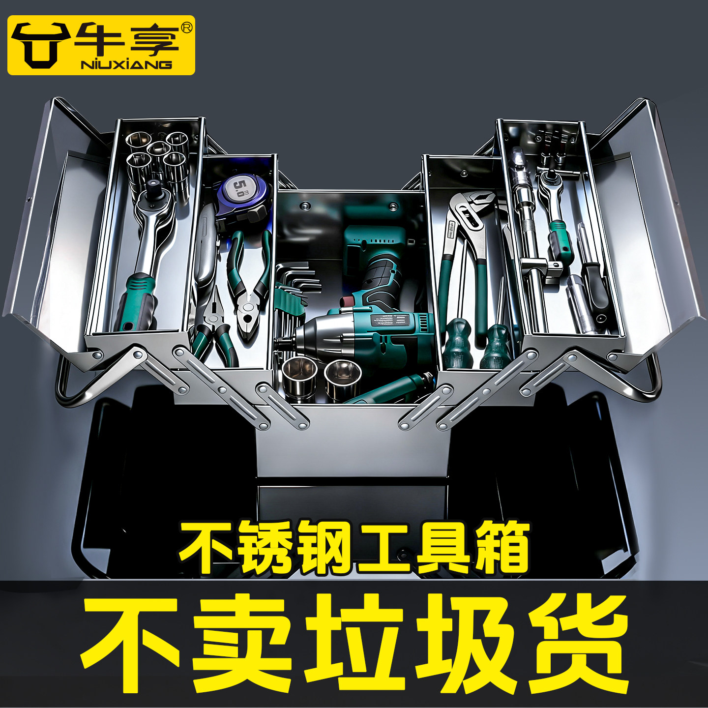 牛享不锈钢五金工具箱三层折叠