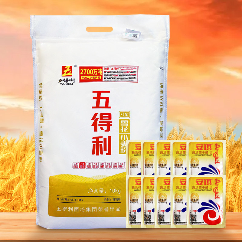 【五得利面粉】八星雪花小麦粉5kg馒头包子家用中筋通用10斤/20斤