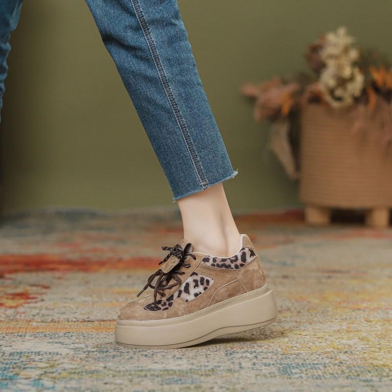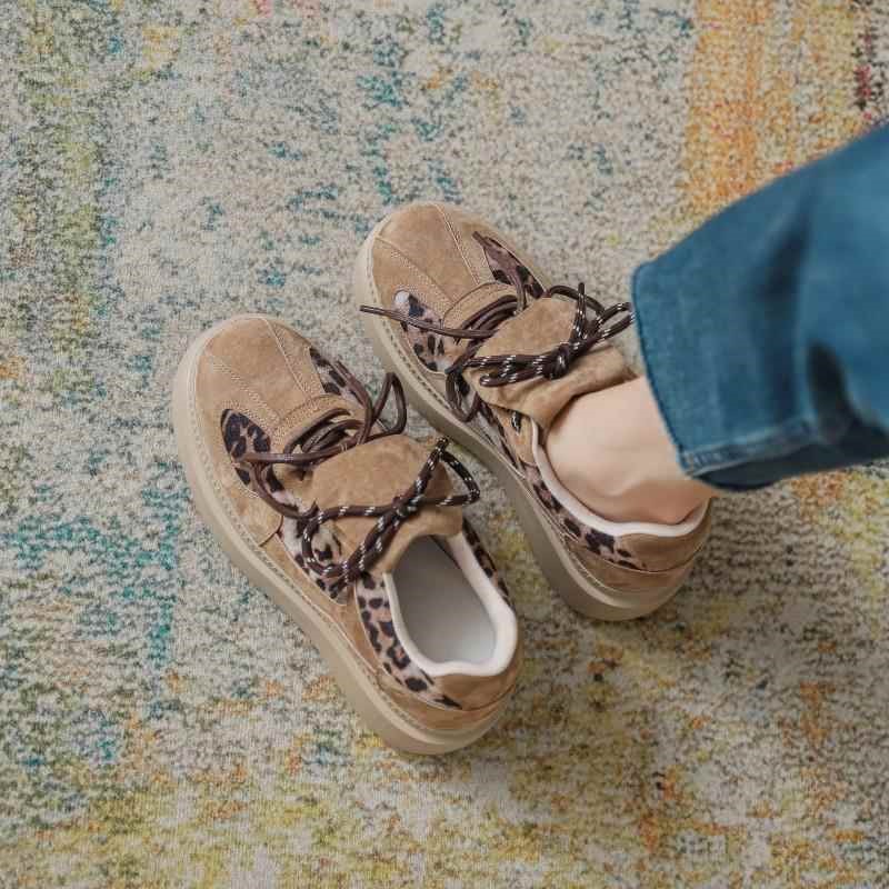 今年流行厚底松糕豹纹鞋子9CM内增高德训鞋女款秋冬休闲运动板鞋