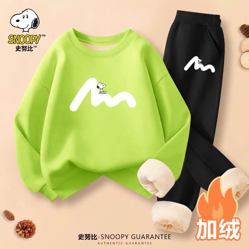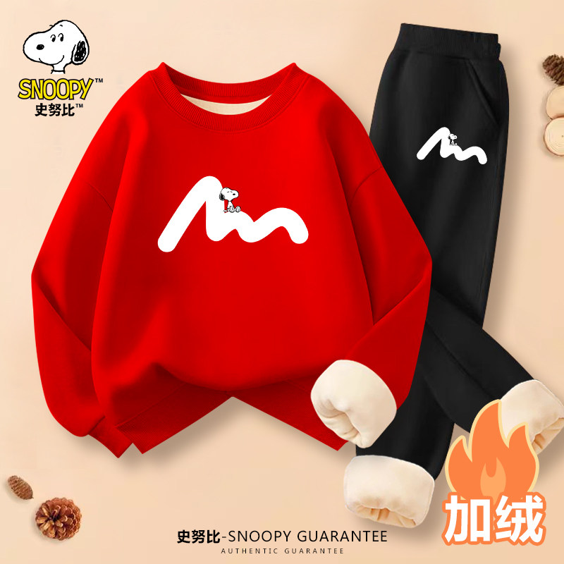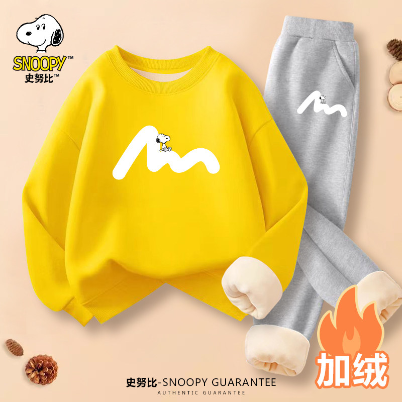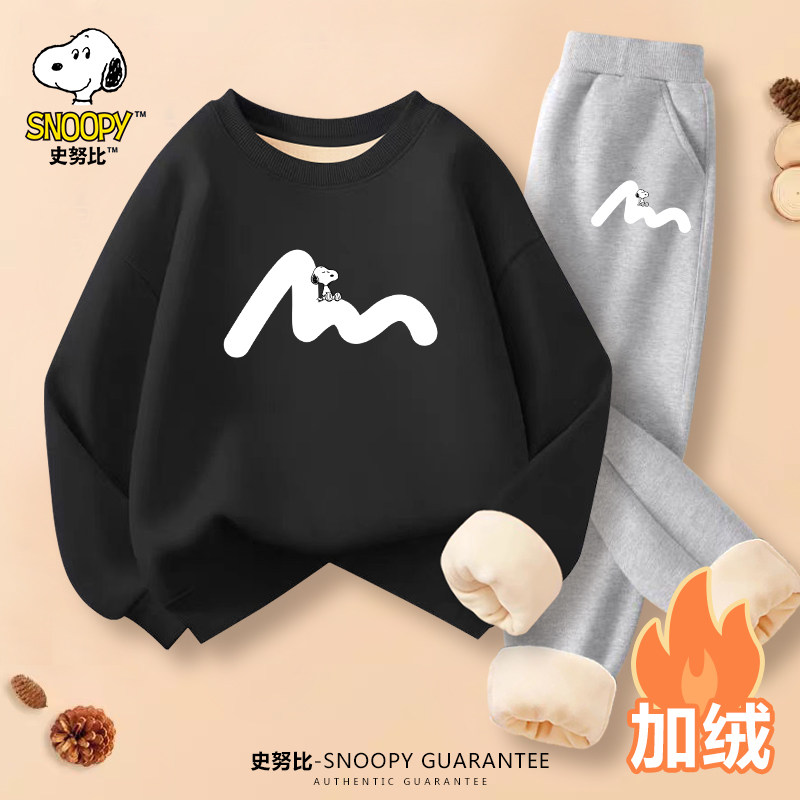 史努比男童加绒套装2024秋冬新款男孩帅气卫衣两件套儿童休闲冬装