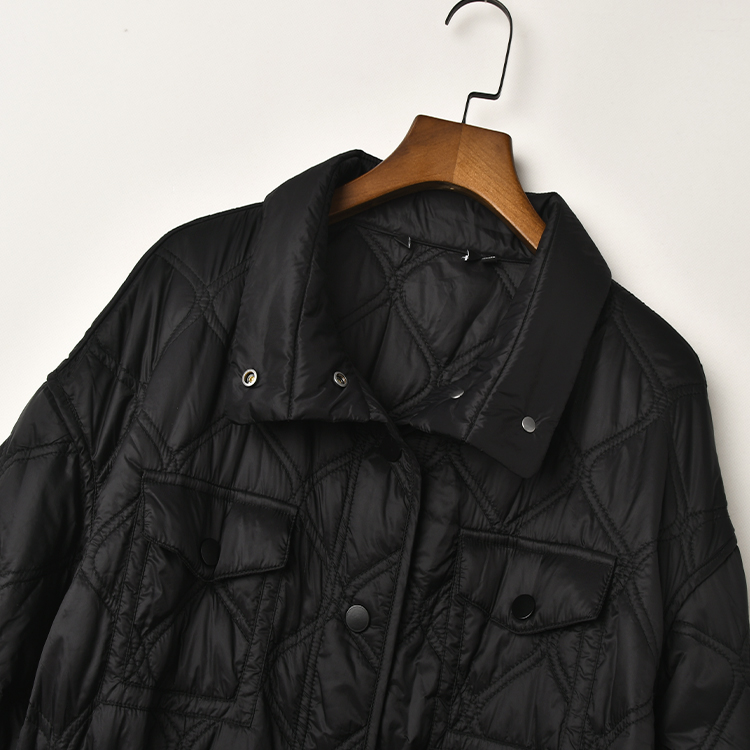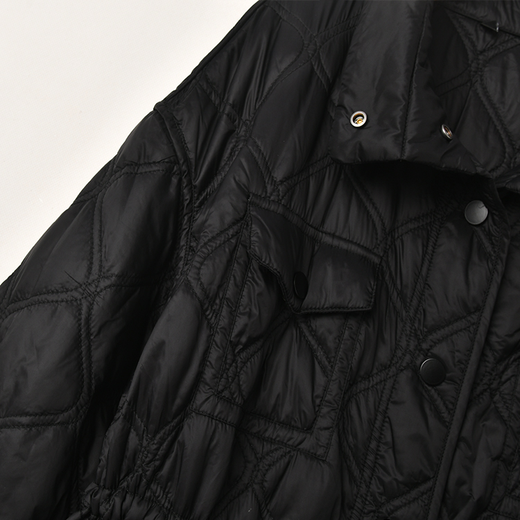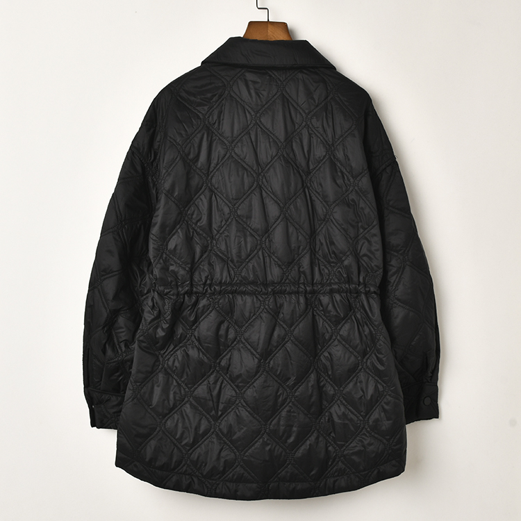 艾诺丝系列菱形格子棉服女中长款收腰显瘦加厚保暖外套大码女装