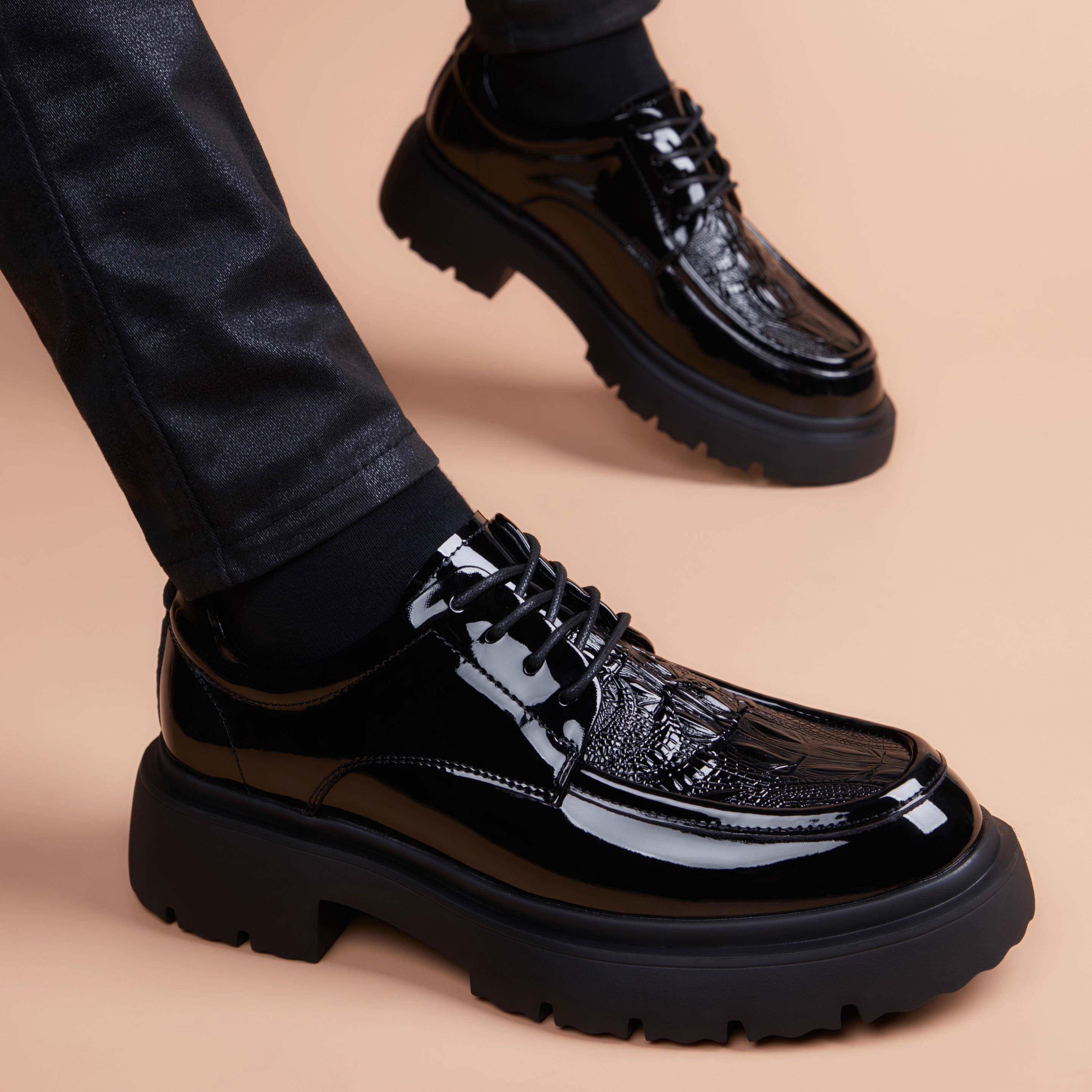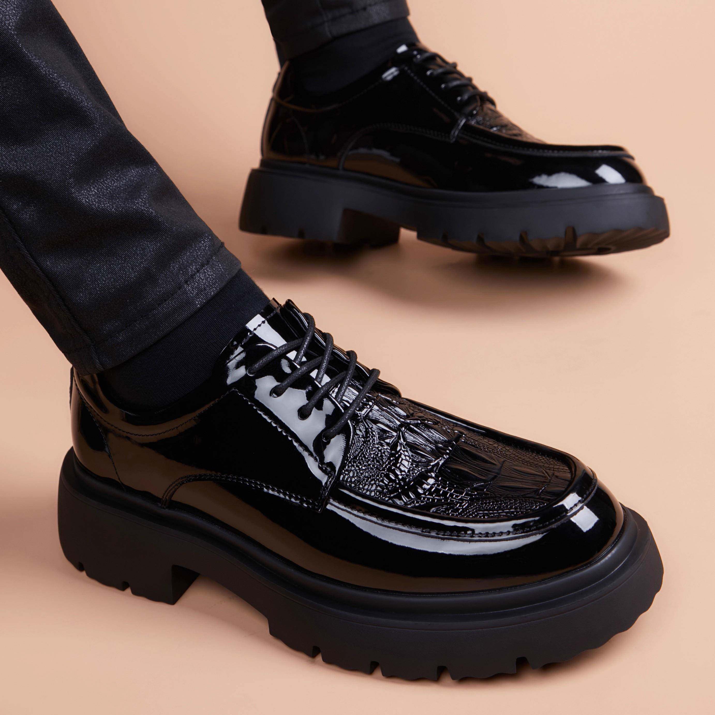 2025新款皮鞋男款真皮厚底德比鞋增高商务休闲英伦风圆头高端男鞋