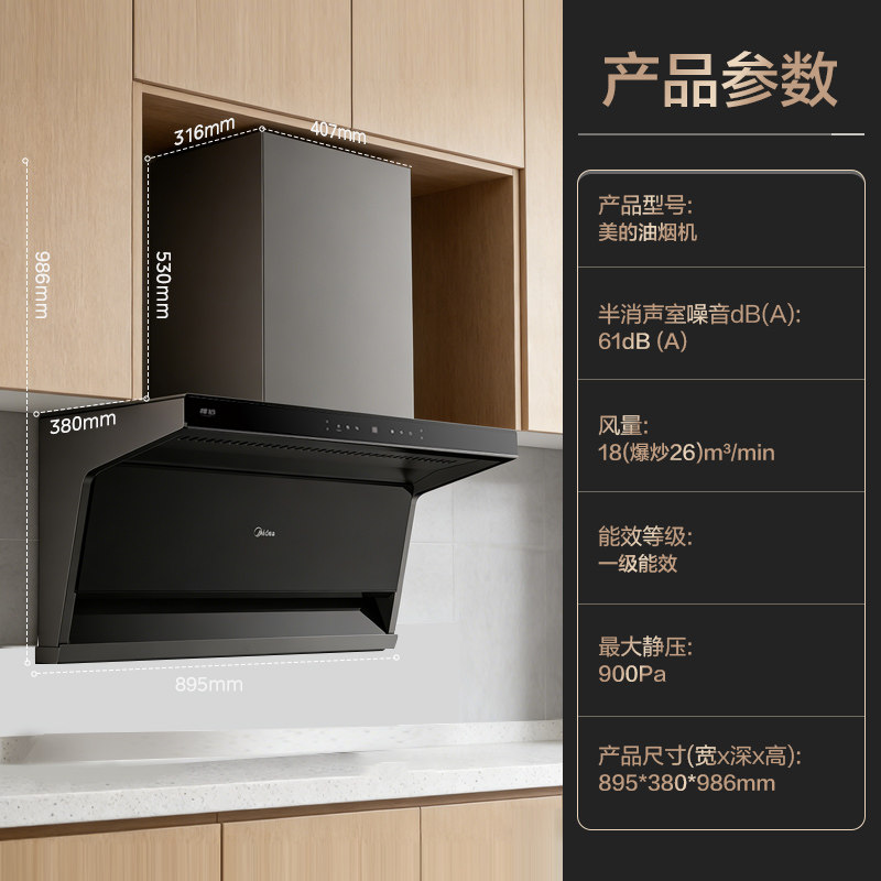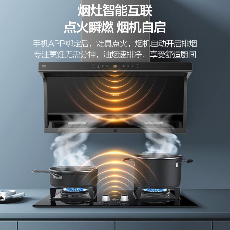 美的抽油烟机家用烟灶套装智控
