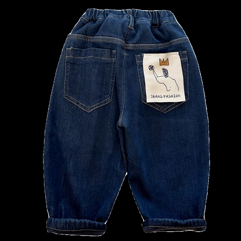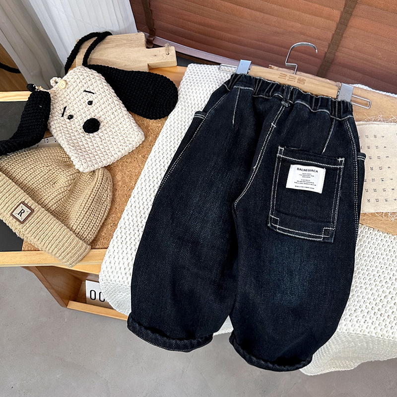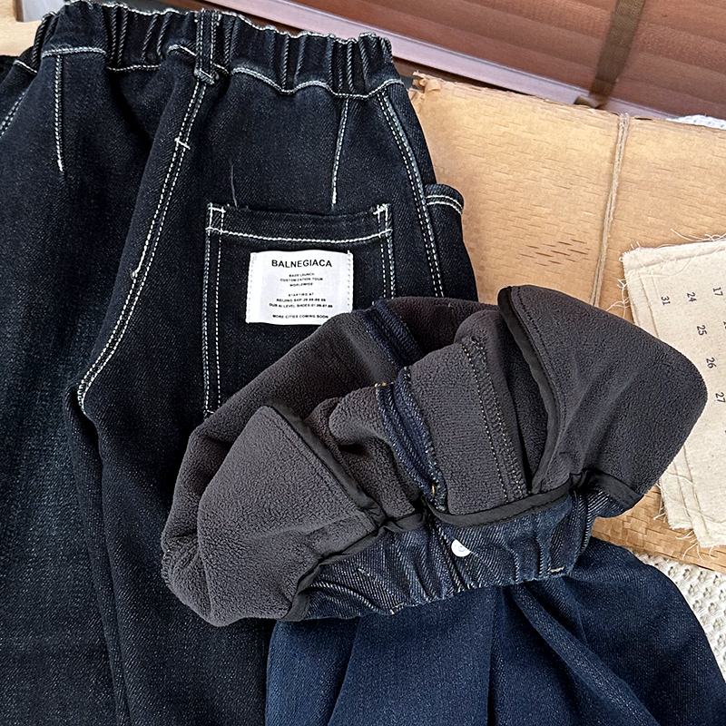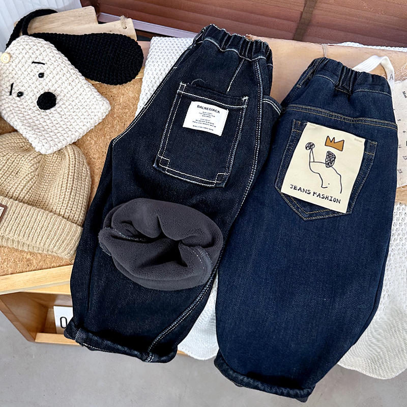 儿童加绒牛仔裤冬季加厚男童一体绒裤H子宝宝宽松软牛仔女童冬装