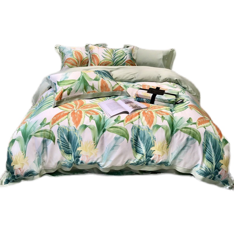 80支冰丝四件套天丝纯色简约欧式 丝滑夏季裸睡床单被套床上用品