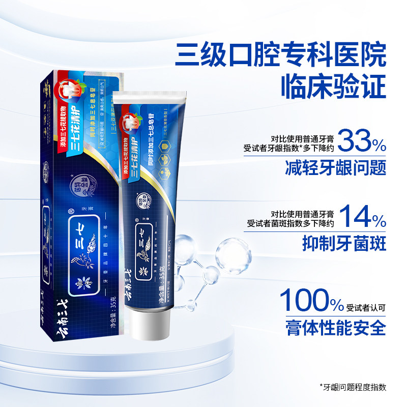 【试用】云南三七花清护35g牙膏专效护龈护理清火清新口气旅行装