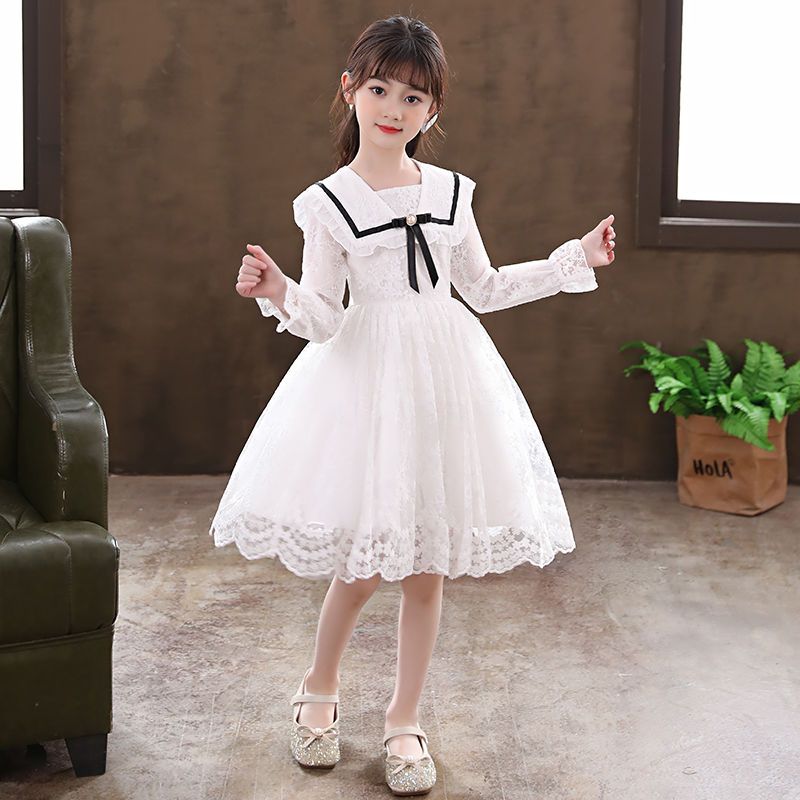 女童连衣裙夏装新款春秋白色演出裙礼服公主裙小R女孩超仙蕾丝纱